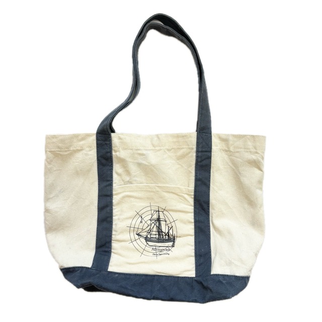 cotton bag Charles Towne Landingの お土産バッグでしょうか☺︎ 夏らしい船のグラフィックがおしゃれです◎ しっかりしたキャンバス生地で、 スナップボタンと外側にポケットがあります◎ ▷size(平置き) 横 45㎝ 縦 32㎝ マチ 15㎝ 多少の誤差はご了承ください。 (着用画像:身長153㎝) ▷color 白 紺色 ホワイト ネイビー ▷fabric コットン ▷condition 青い色移りや汚れがあります。 画像でご確認ください。 ◯ダメージ等について◯ 当店の商品はほぼすべて、古着/USED/VINTAGEになります。確認して記載させていただいておりますが、お伝えしきれない小さな傷や汚れがあるものもございます。また撮影環境やモニターによって商品と画像に色誤差が生じる場合がございます。 店頭でお香をたいているため、香りがする可能性がありますので敏感な方はご注意ください。 基本的に返品交換は行っておりませんので、気になる点がございましたら、ご購入前にお問い合わせください。