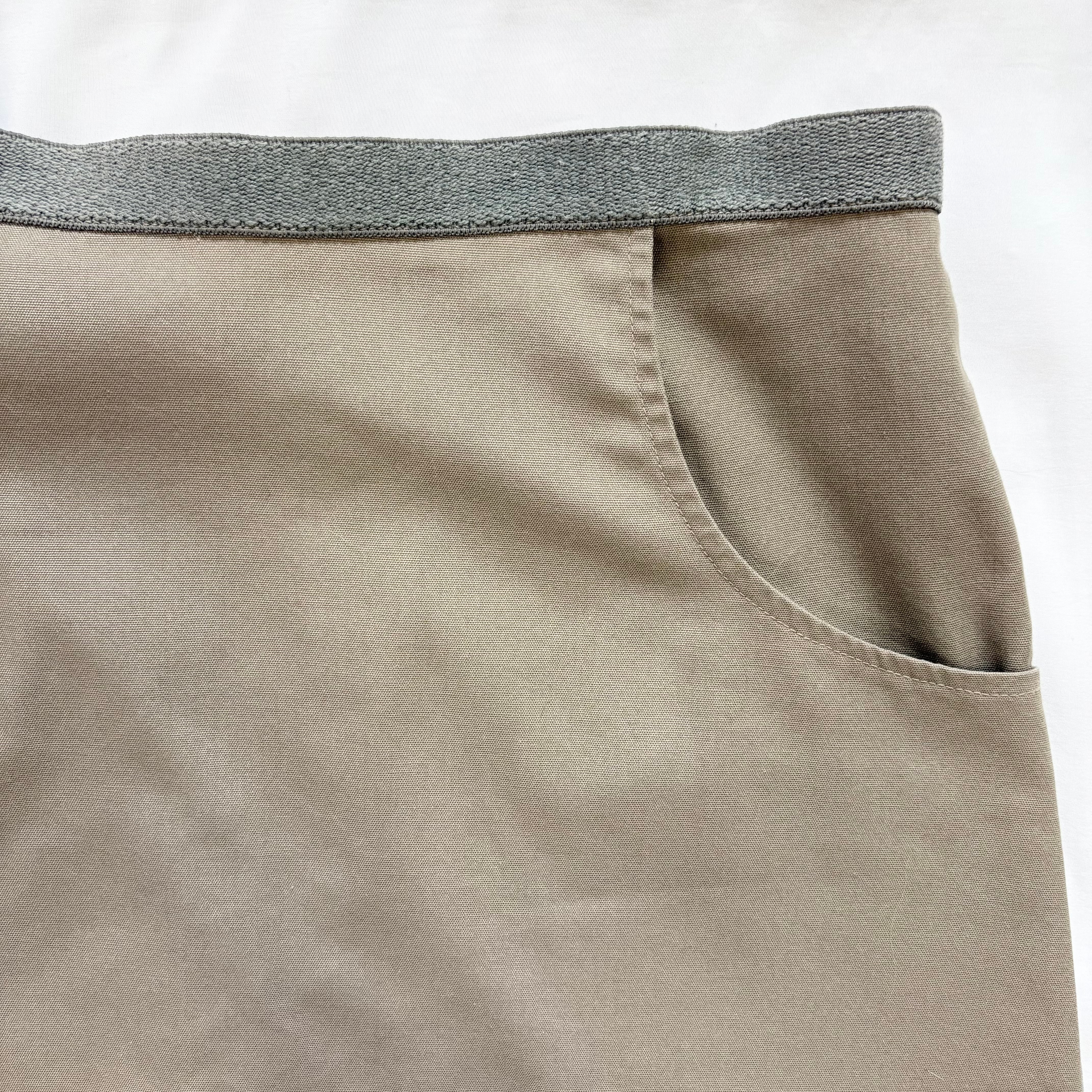 ウエストのゴムが伸び、ゴムの右側は白っぽくなっています。