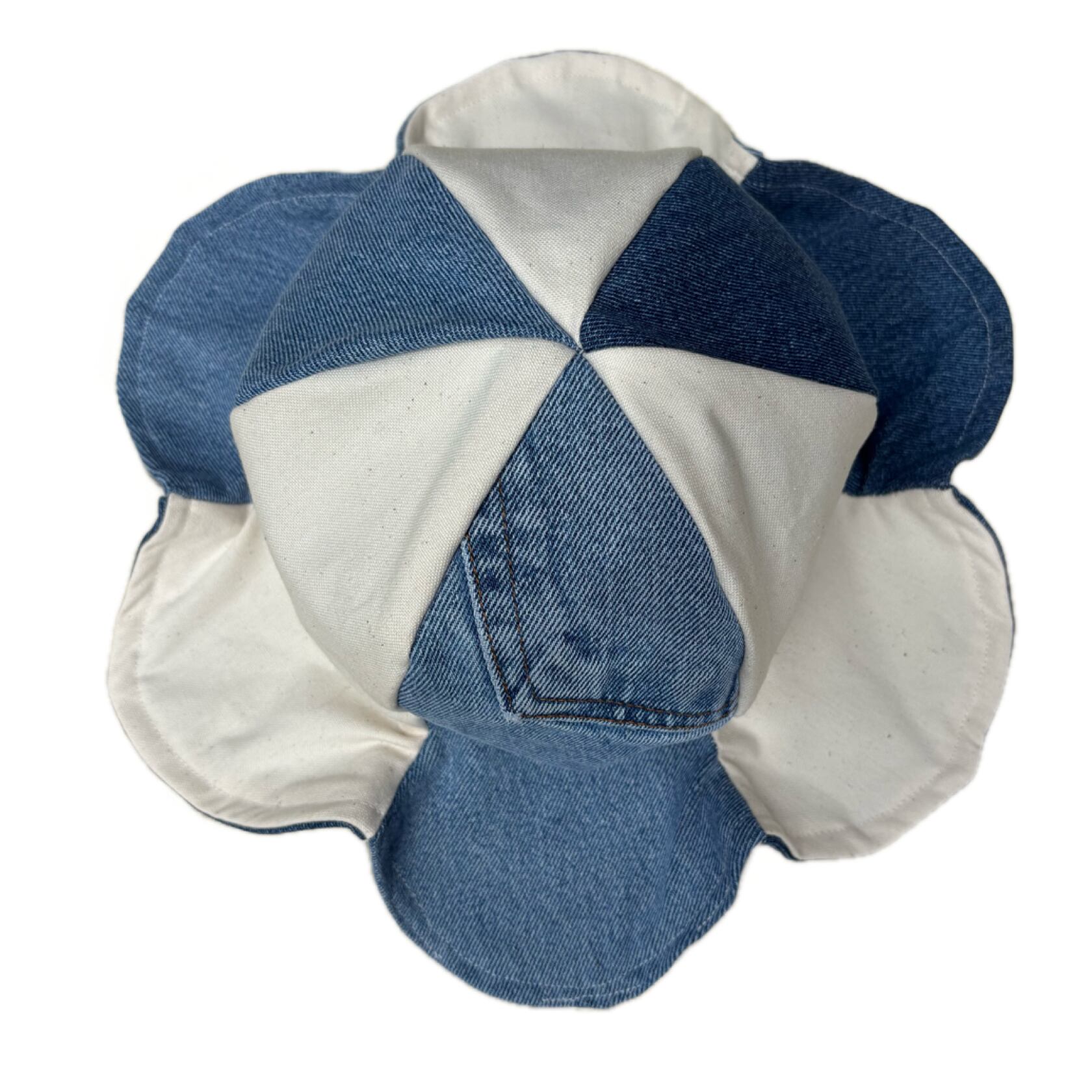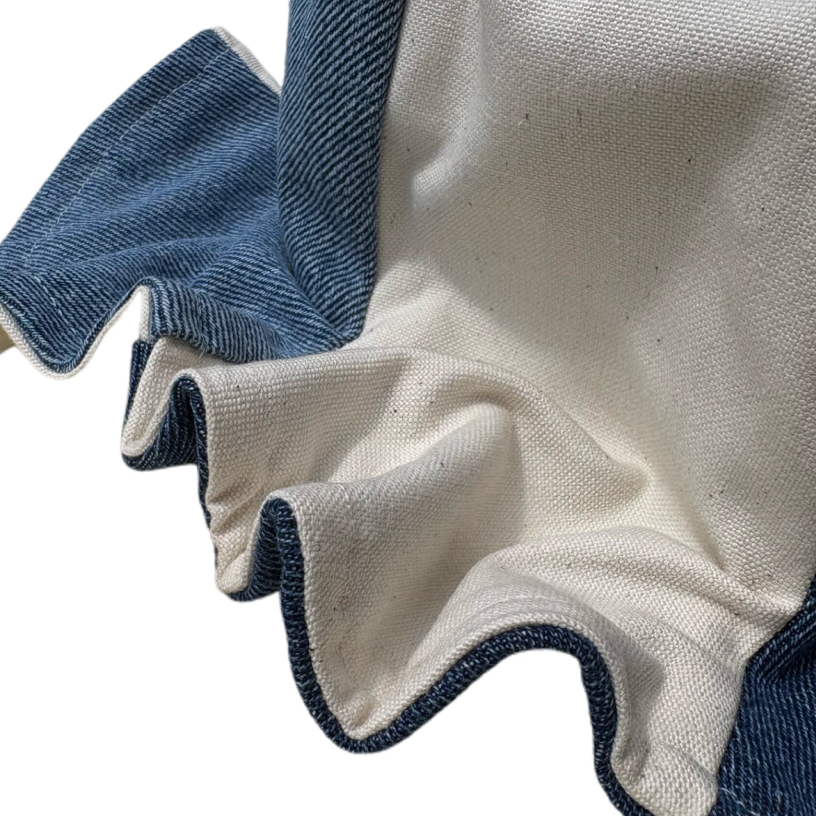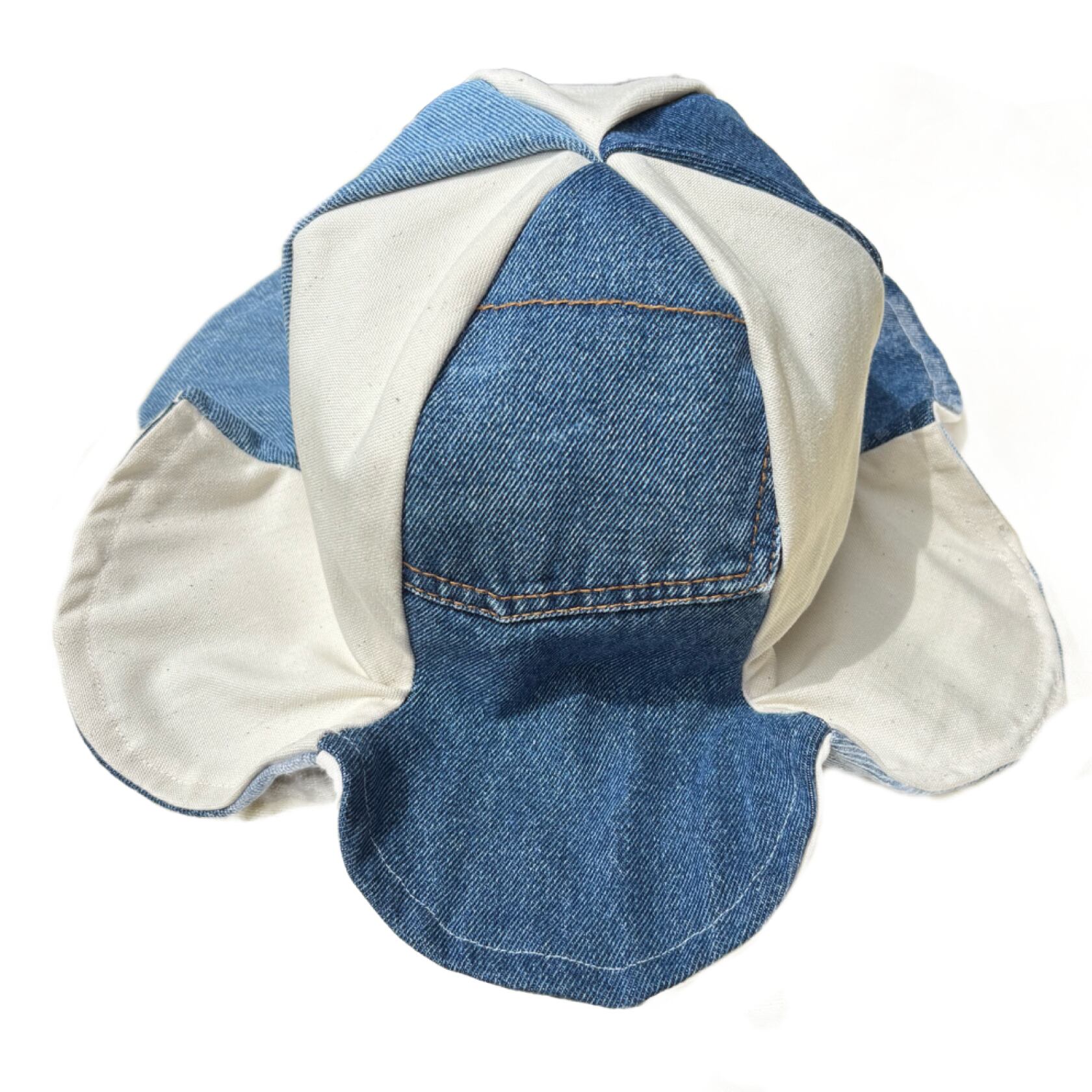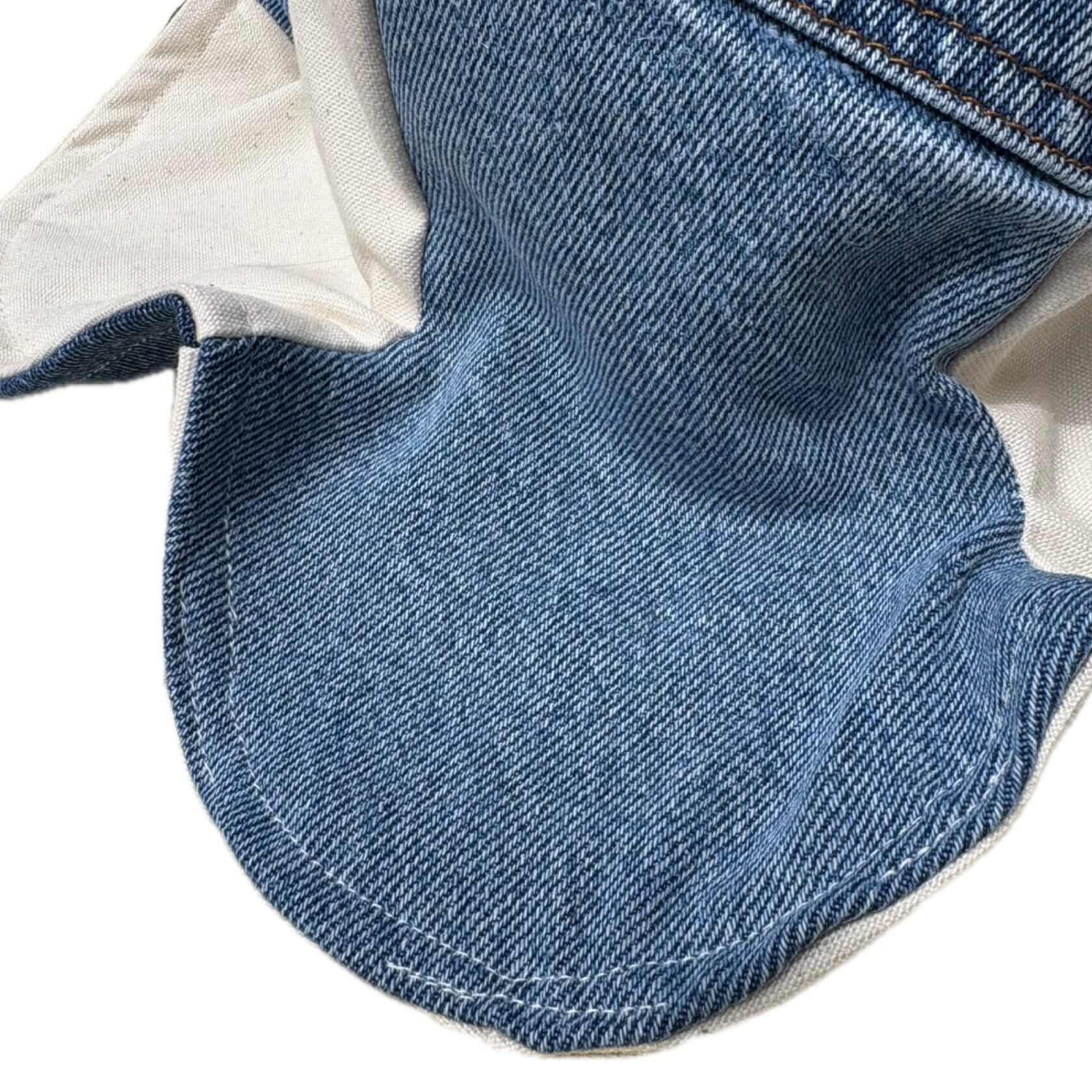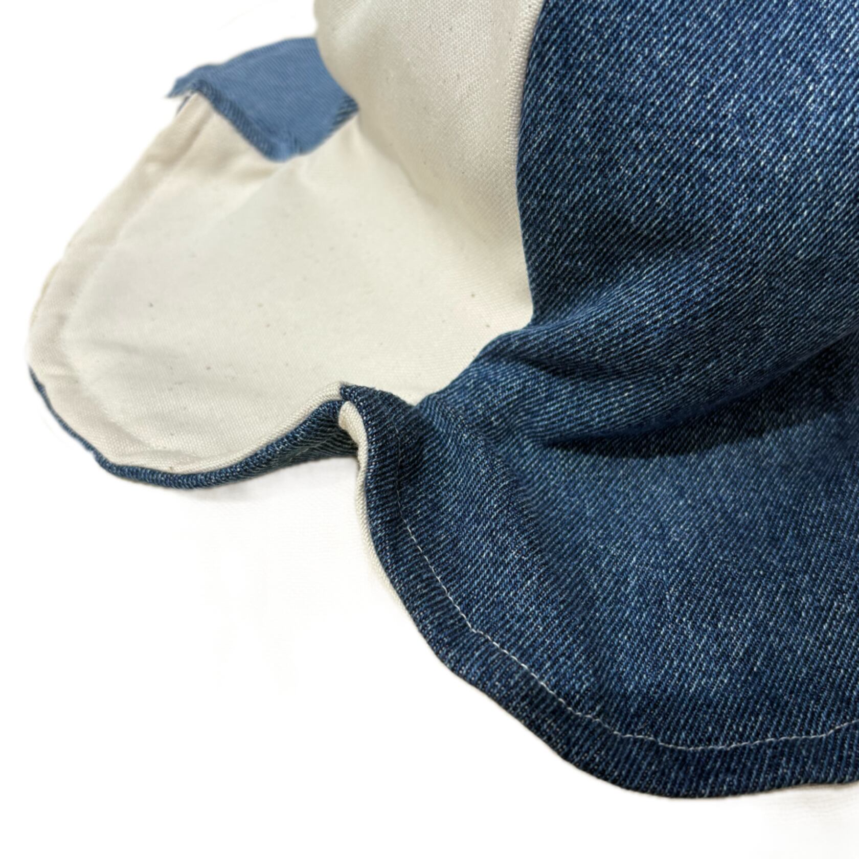 コットン100%のキャンバス生地とデニムパンツを解体したデニム生地を交互で縫ってあります☺︎