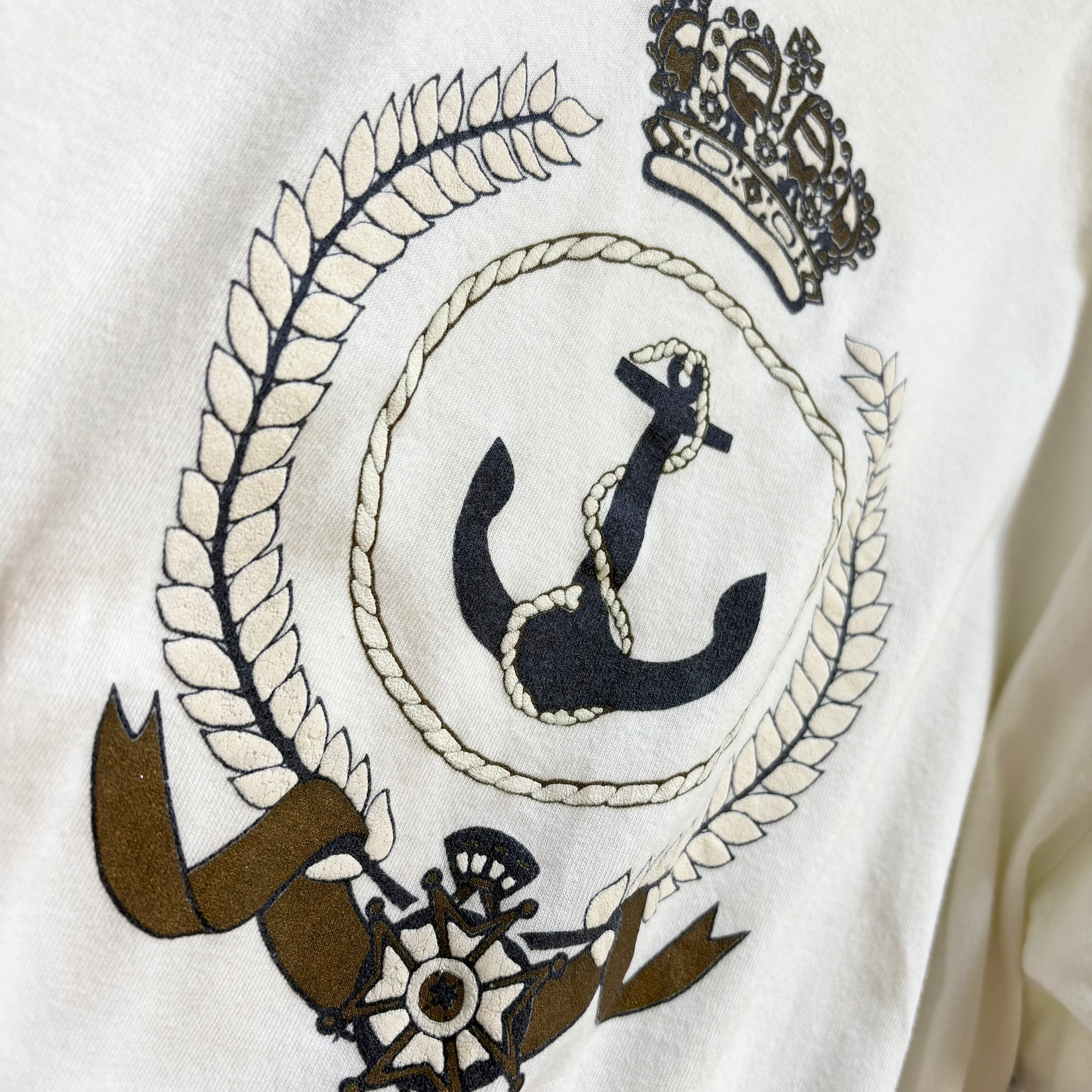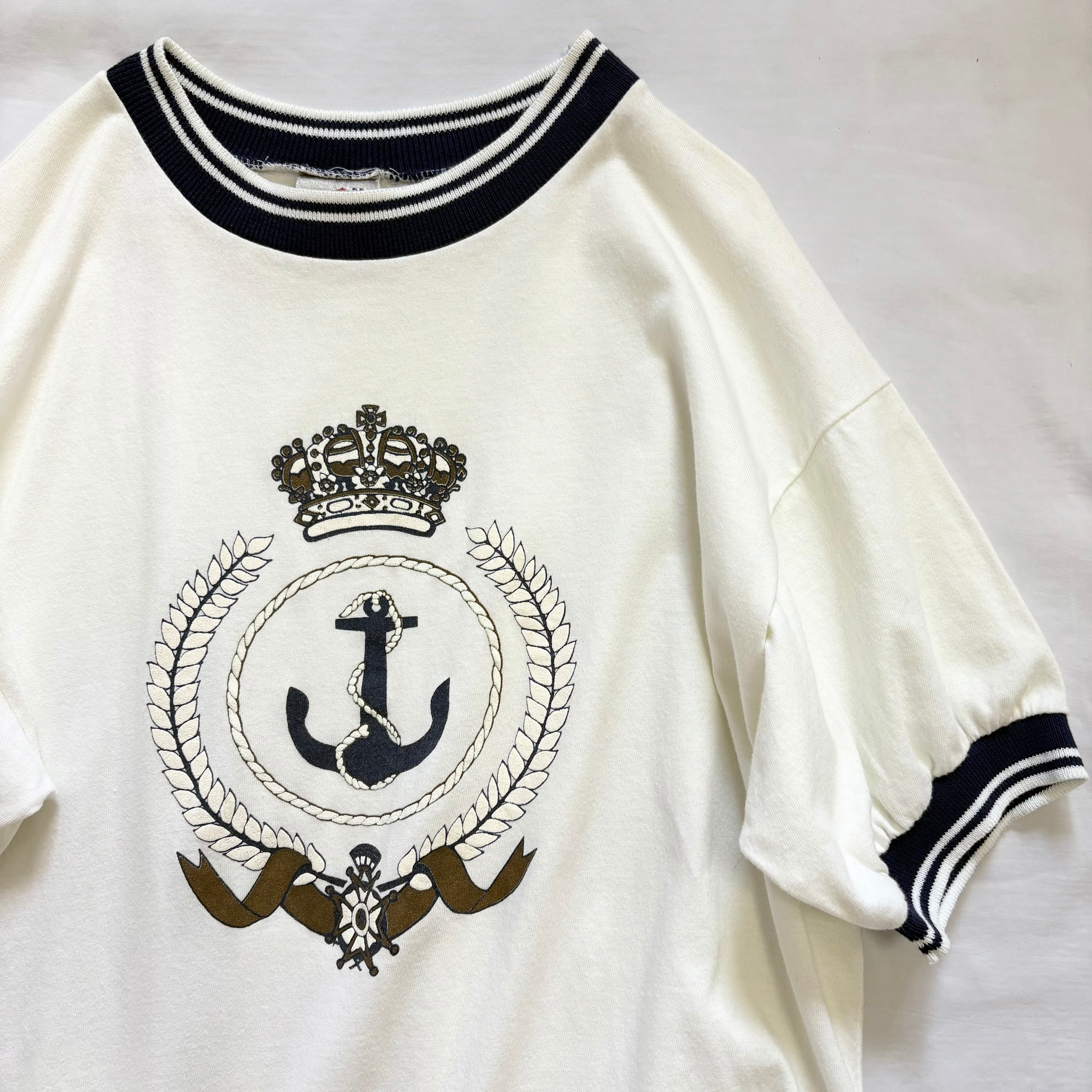 フロントには王冠・イカリ・リースを組み合わせたマリンテイストのエンブレムプリント!