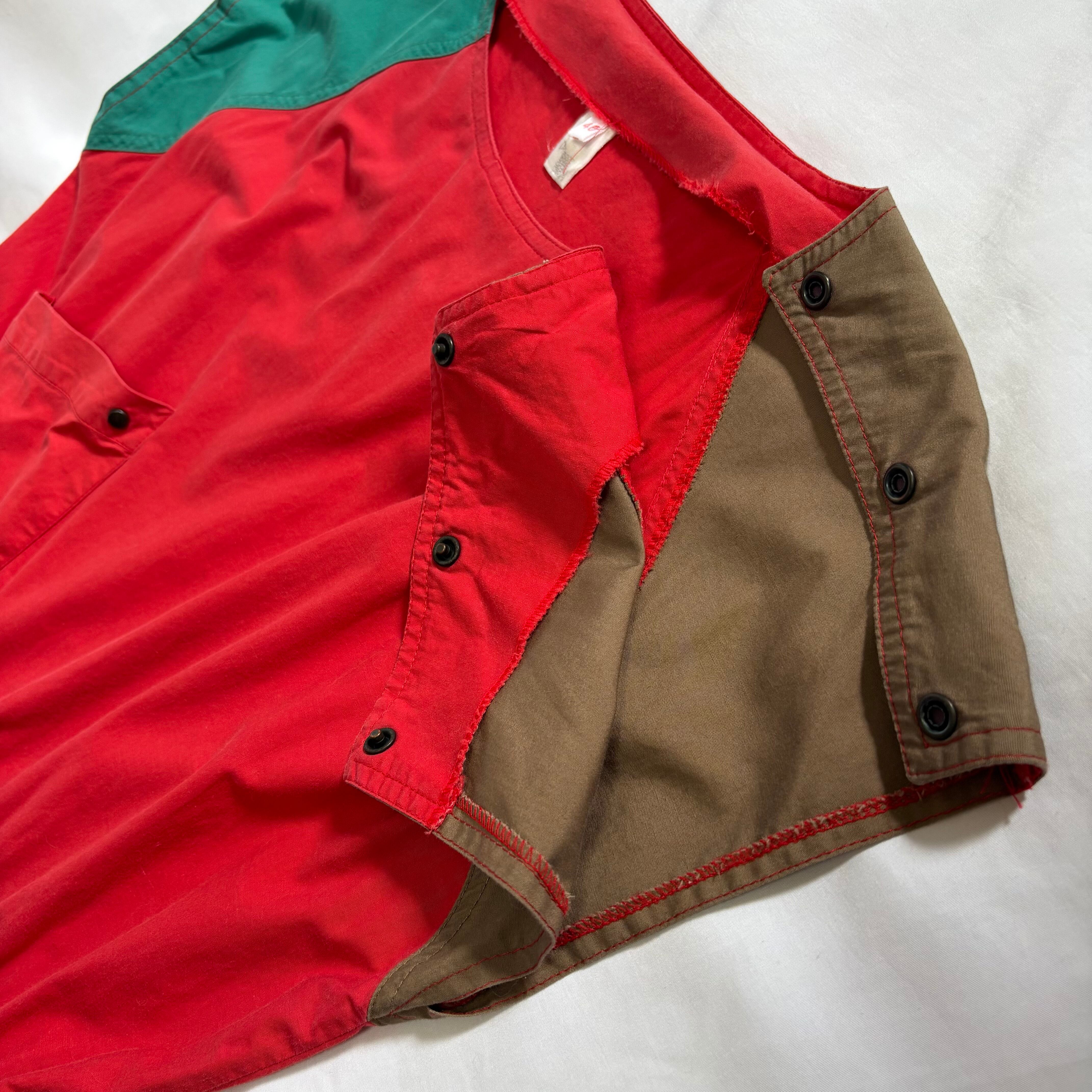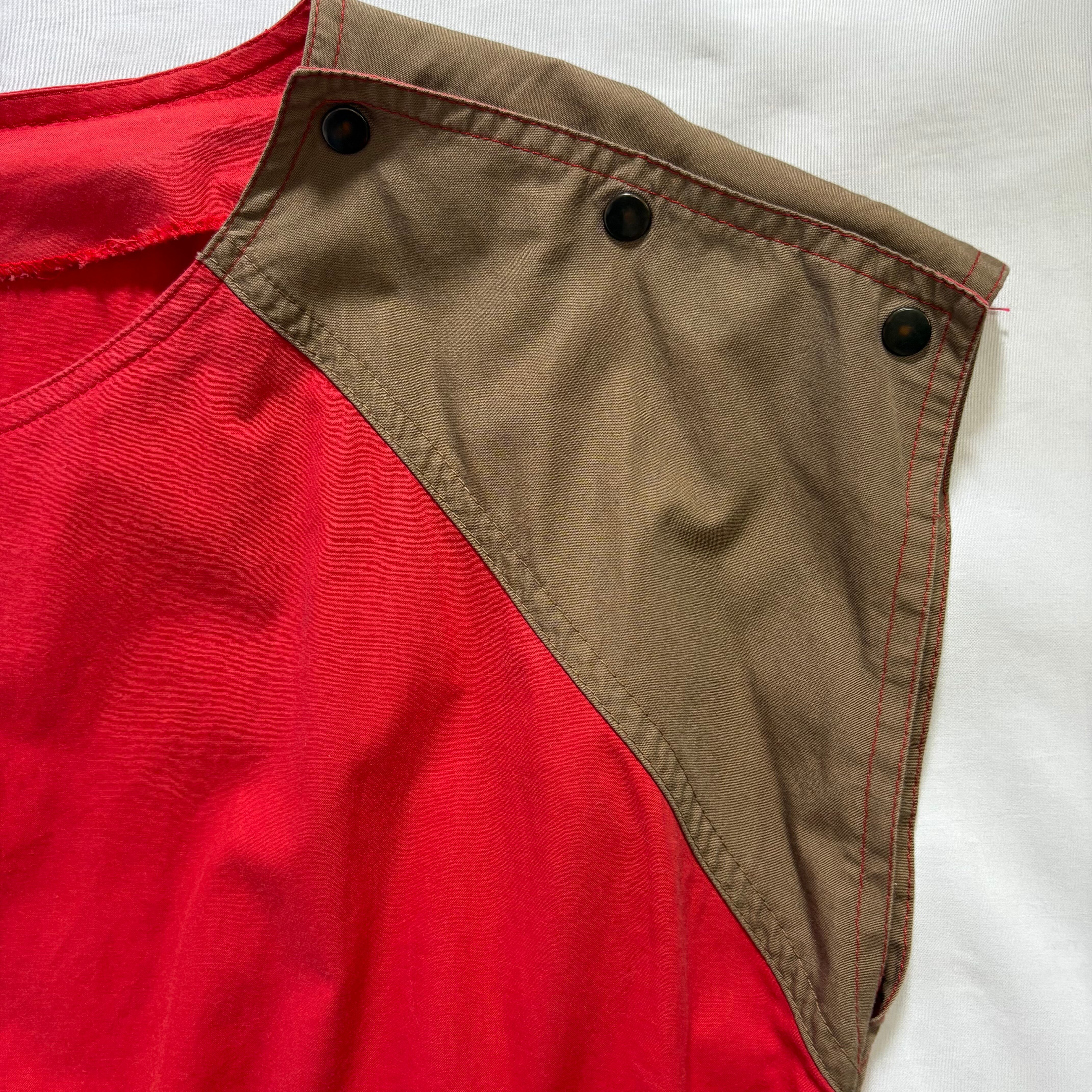 胸元と両サイドにポケット、肩はスナップボタンを外せます◎