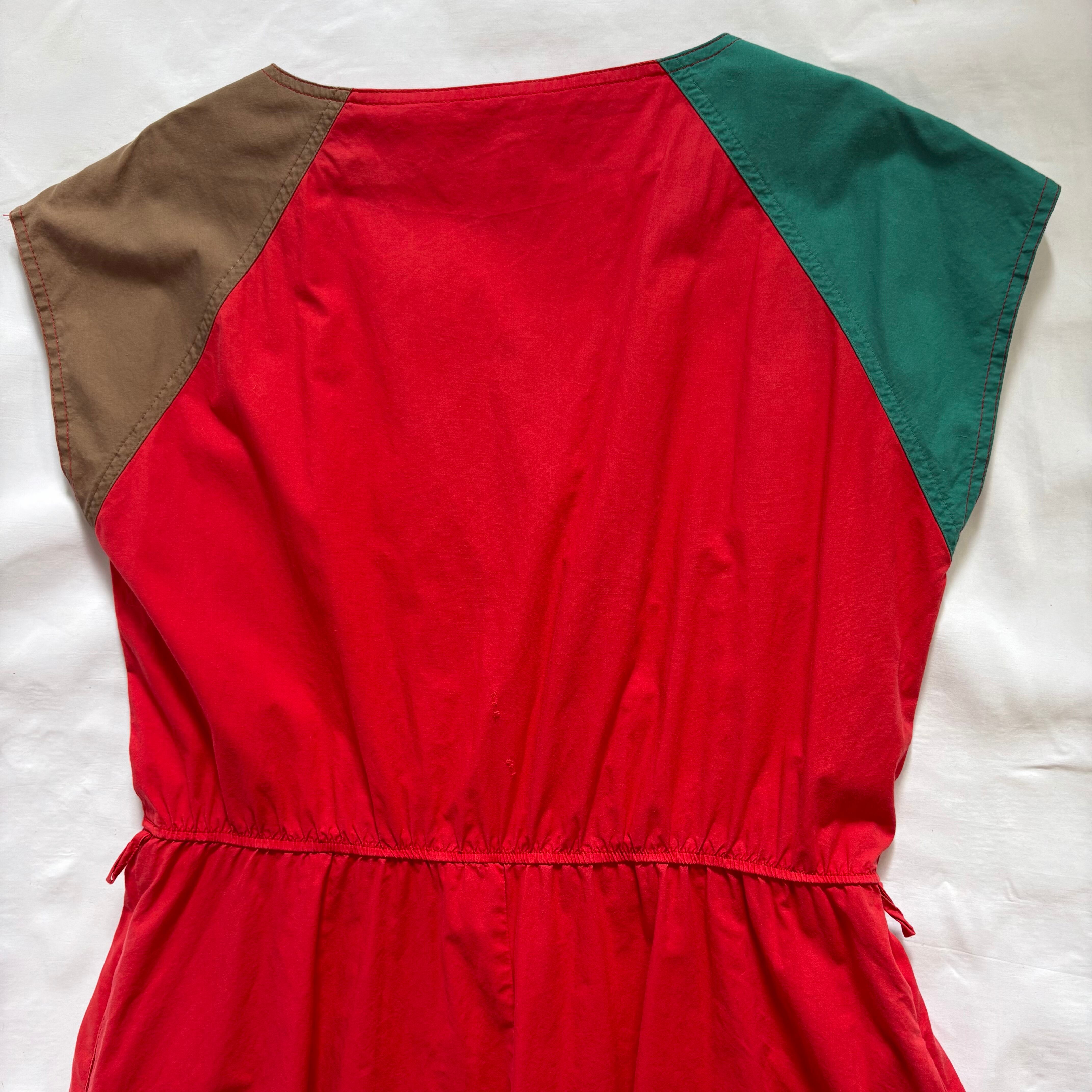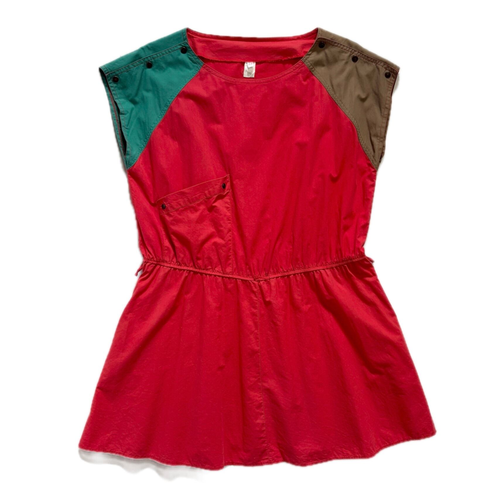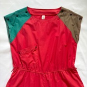 肩部分をグリーンとブラウンの切り替えデザインの個性的なチュニック!☺︎