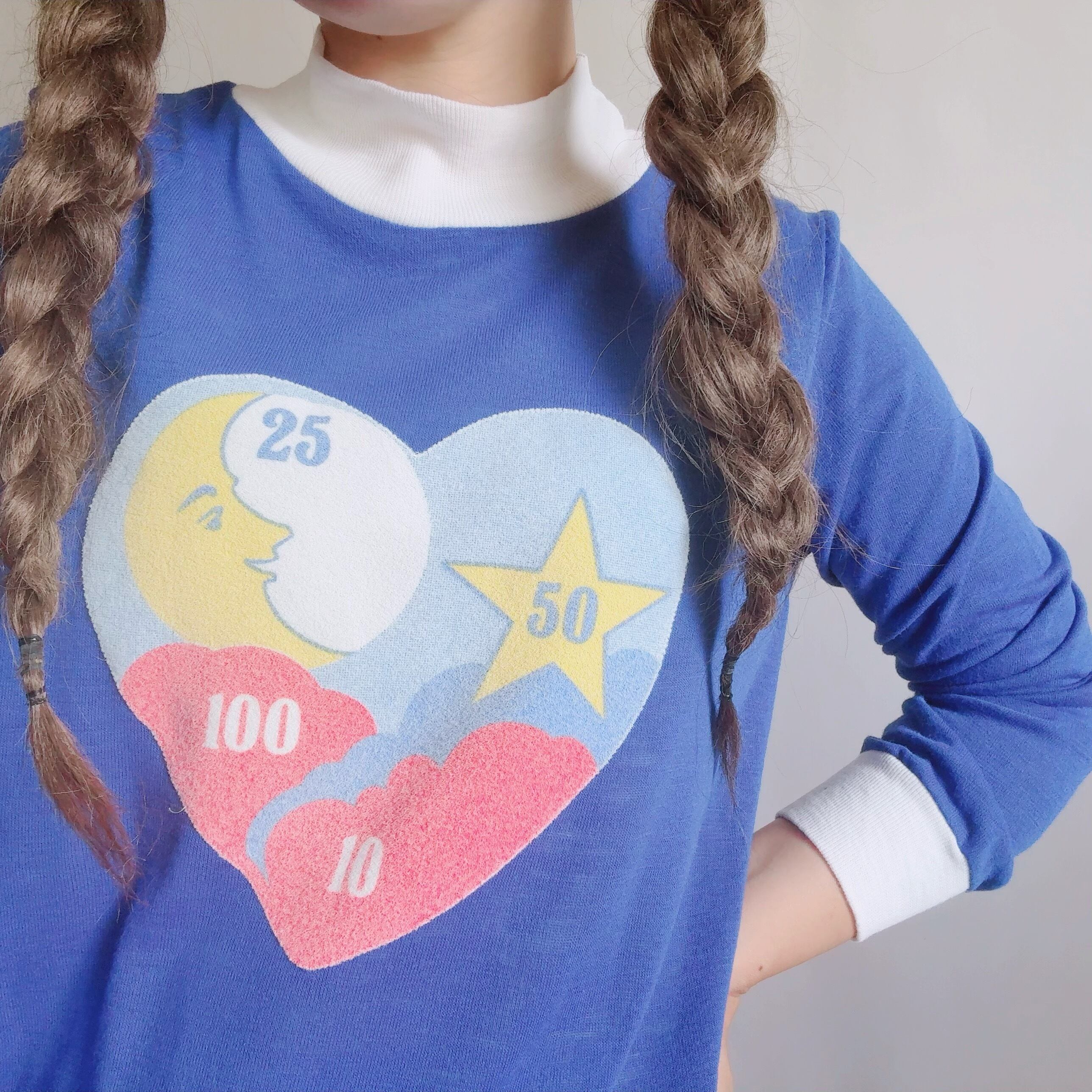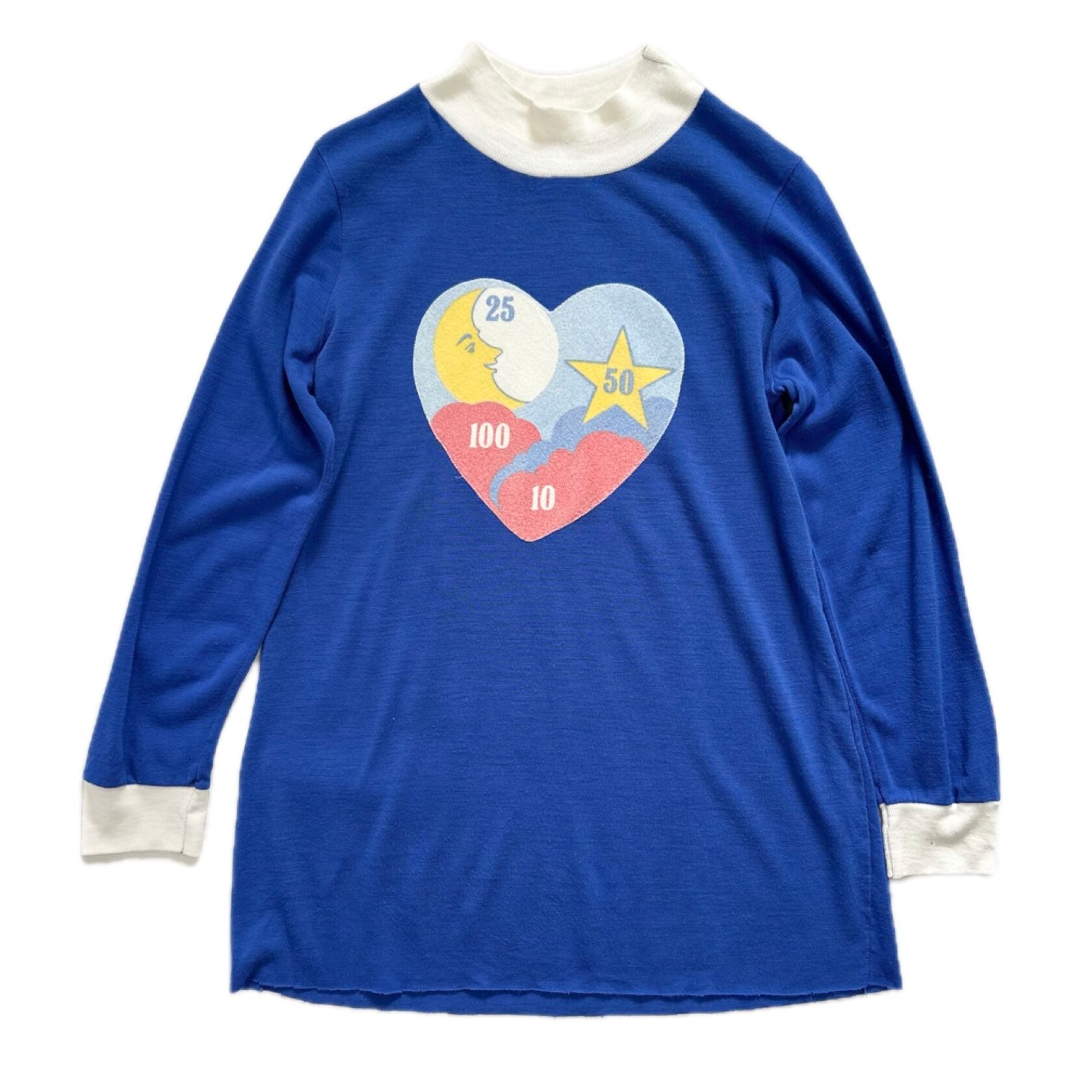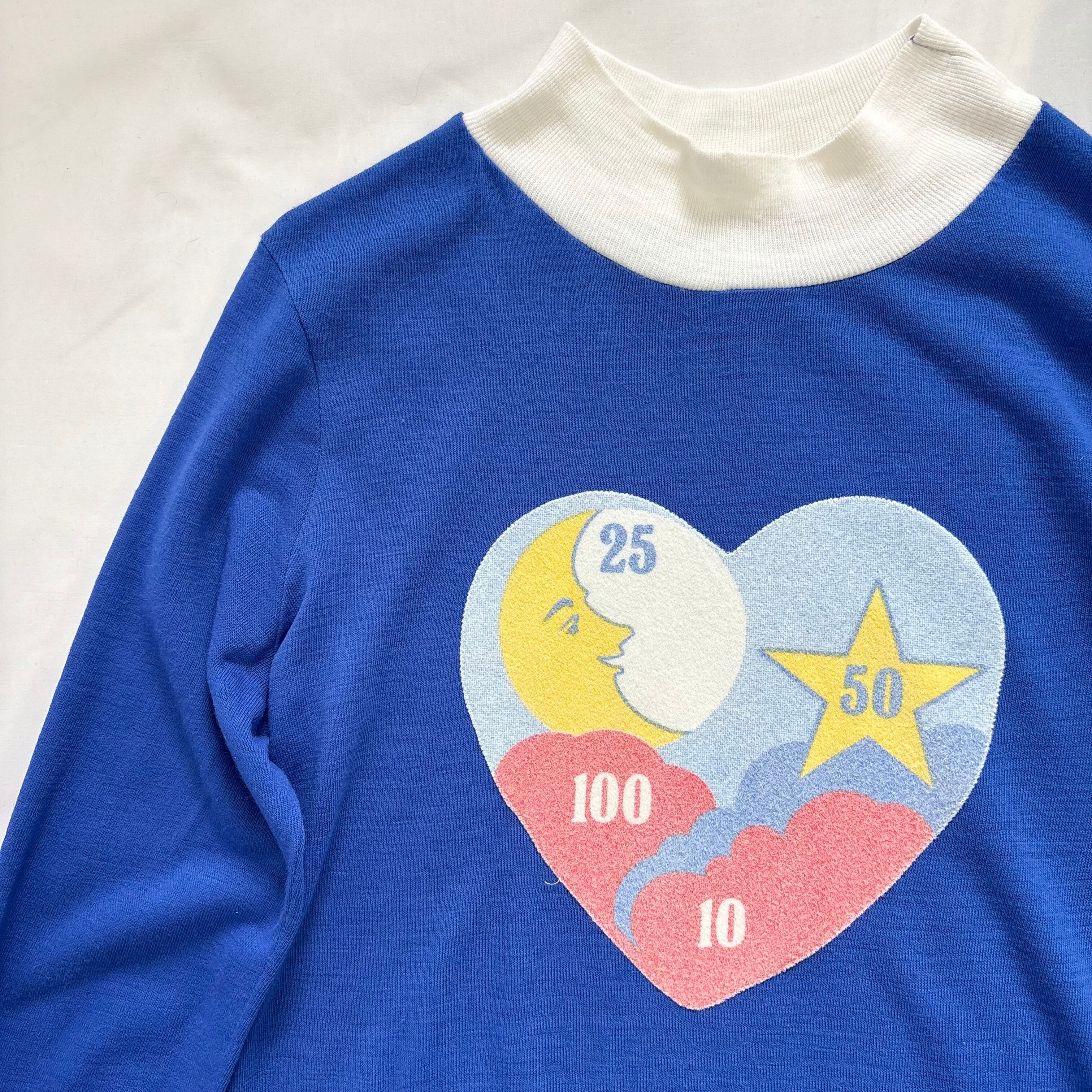 鮮やかなブルーに、ハートモチーフのレトロポップなプリントが映える一枚です!