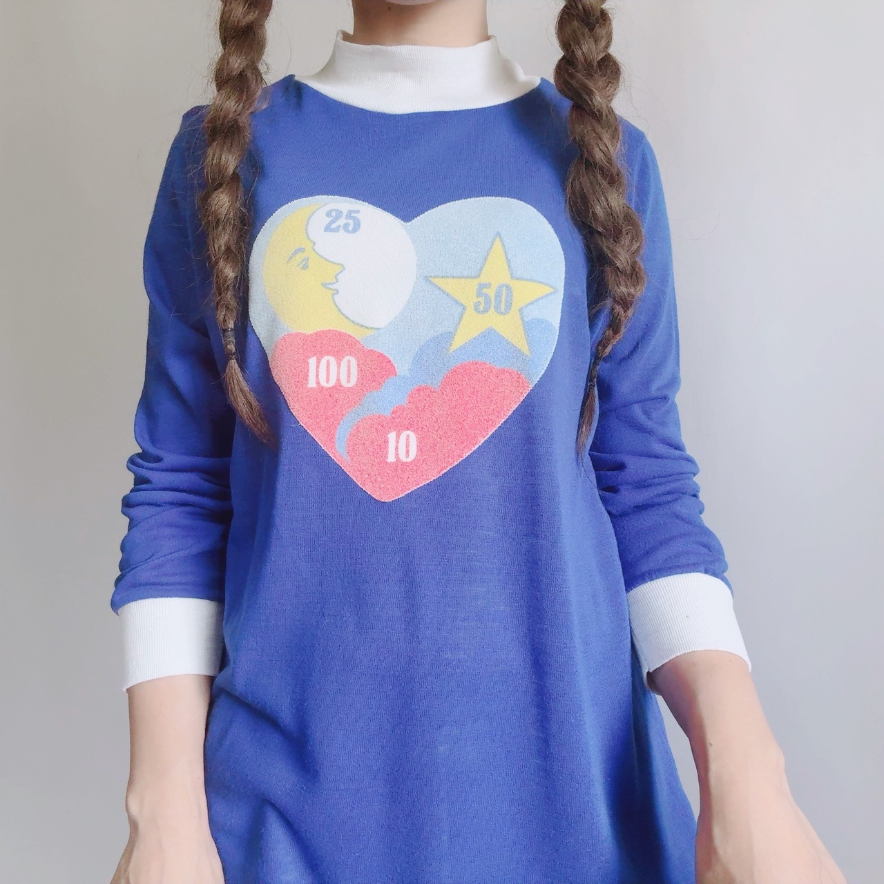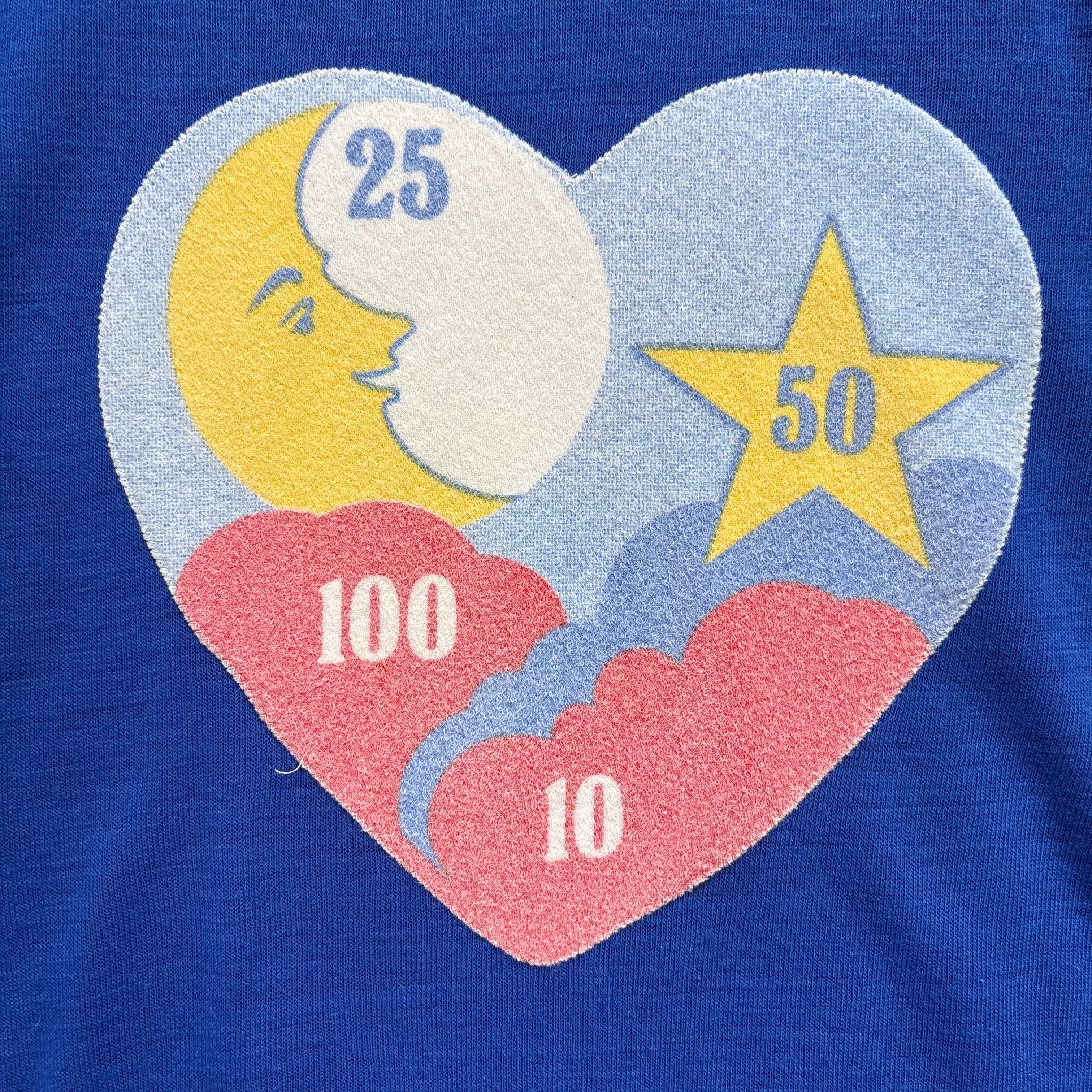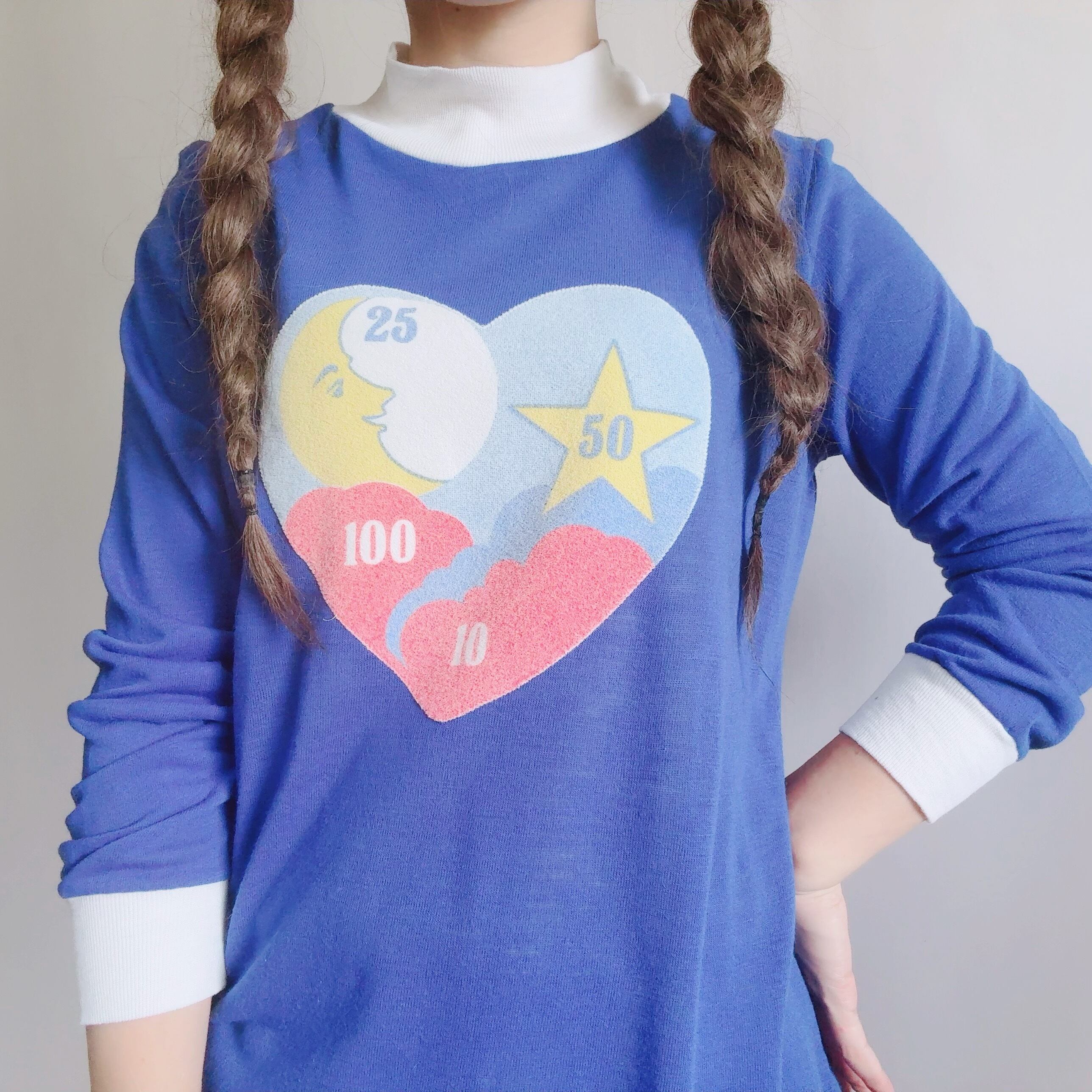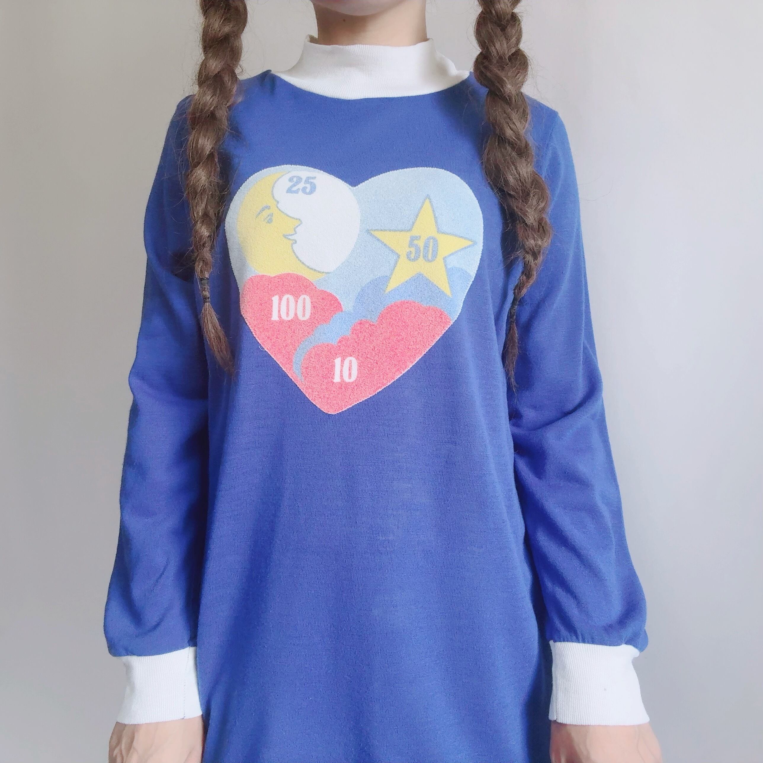 鮮やかなブルーに、ハートモチーフのレトロポップなプリントが映える一枚です!