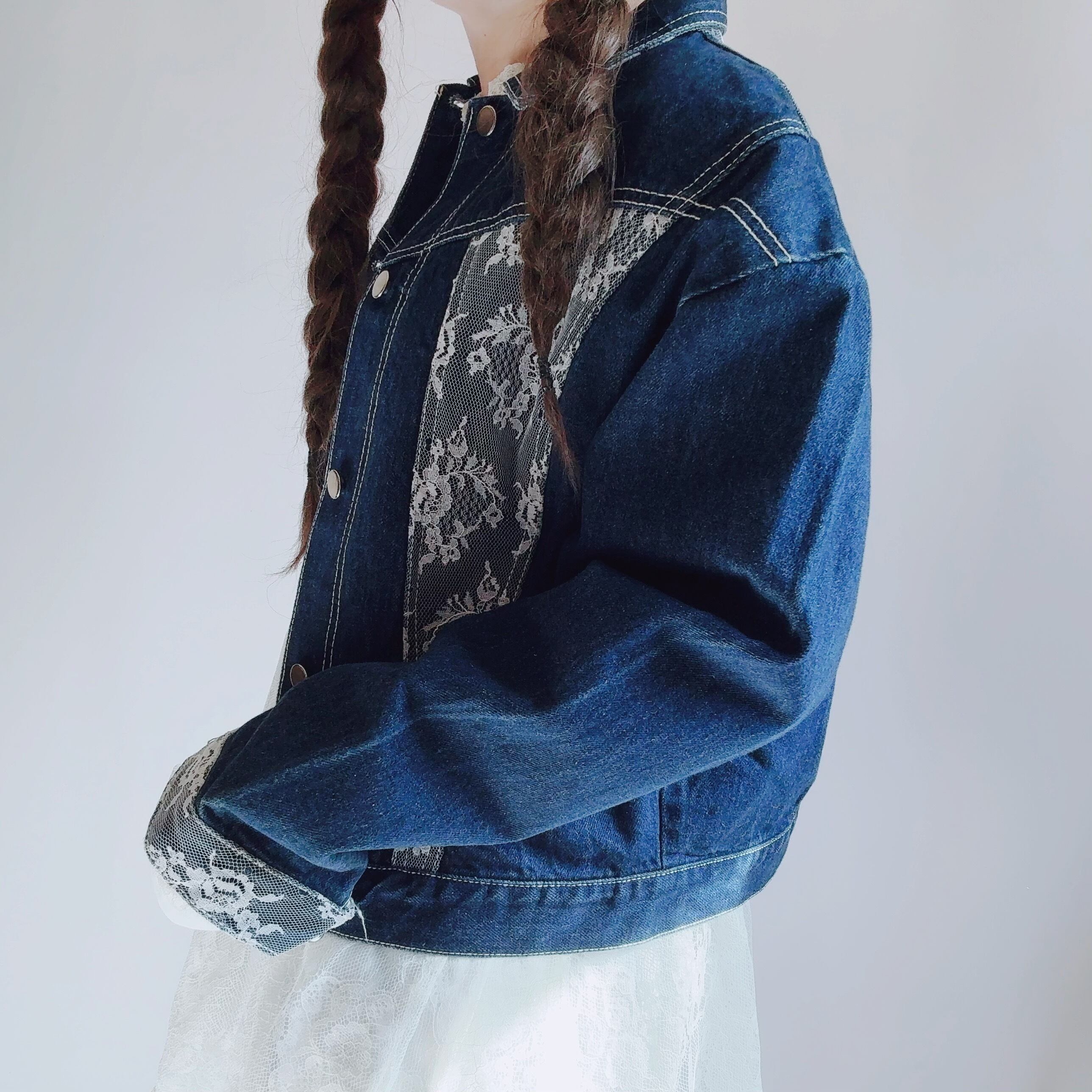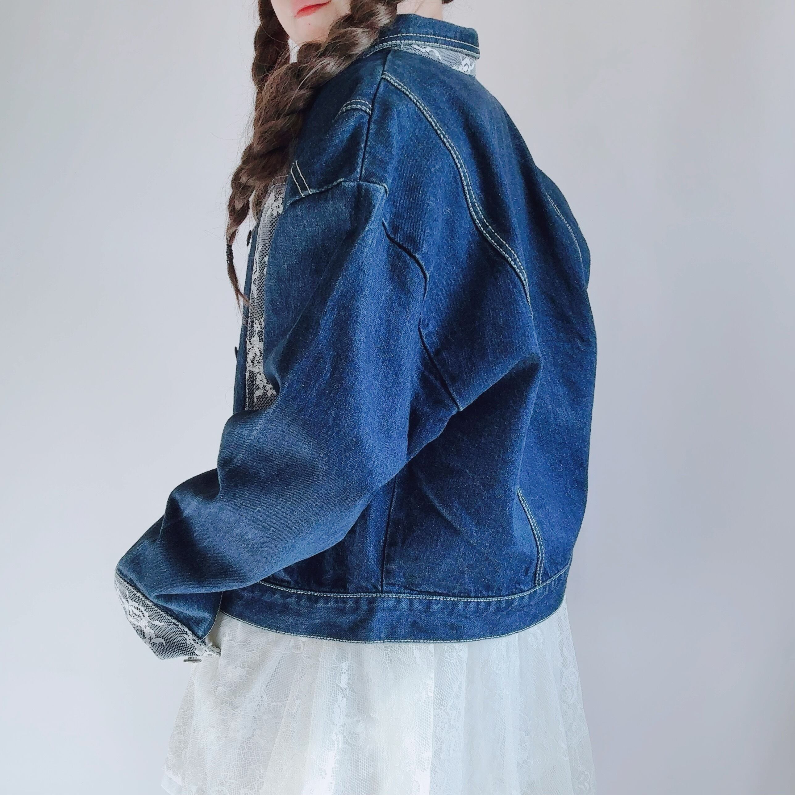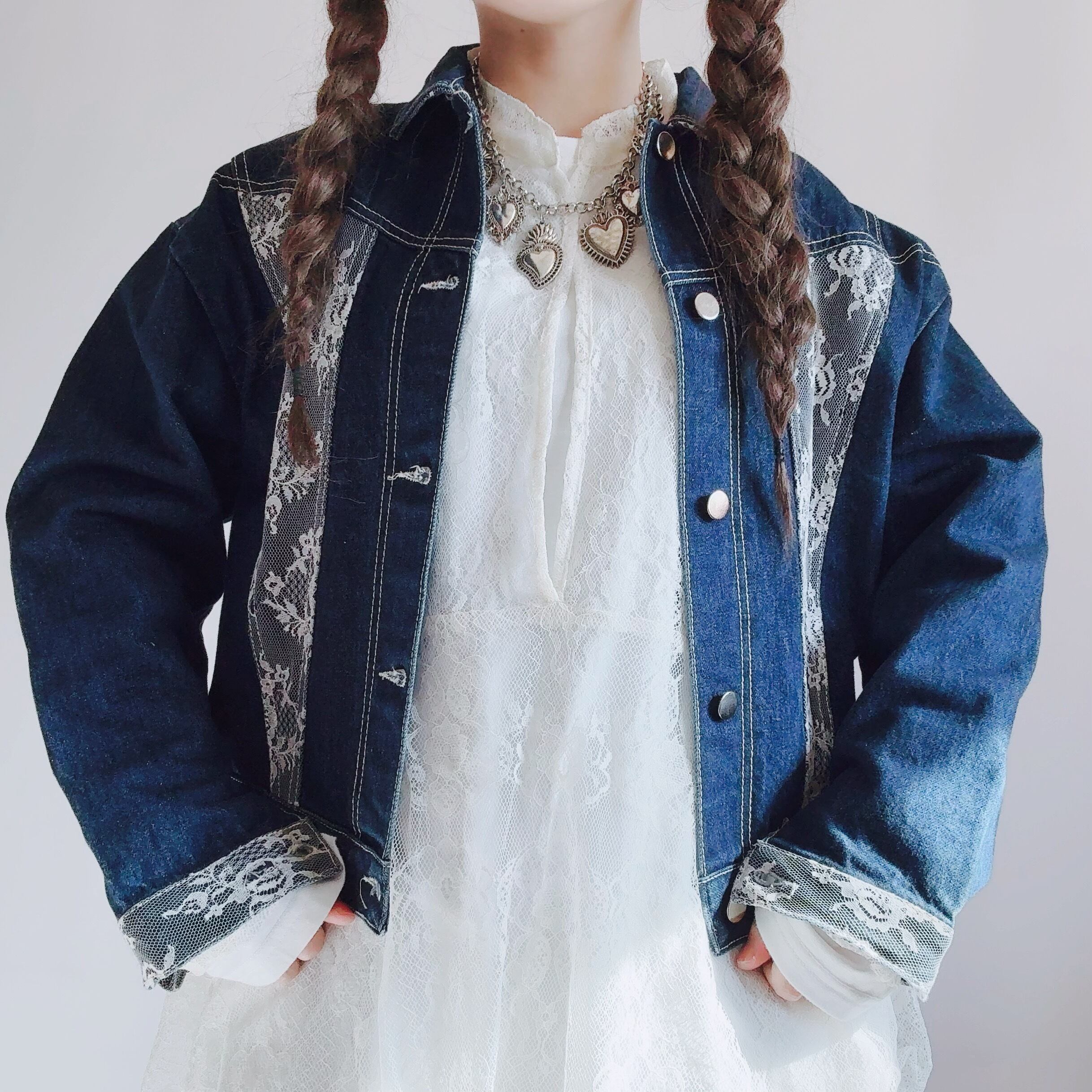 レースがかわいい濃いブルーのデニムジャケット !☺︎
