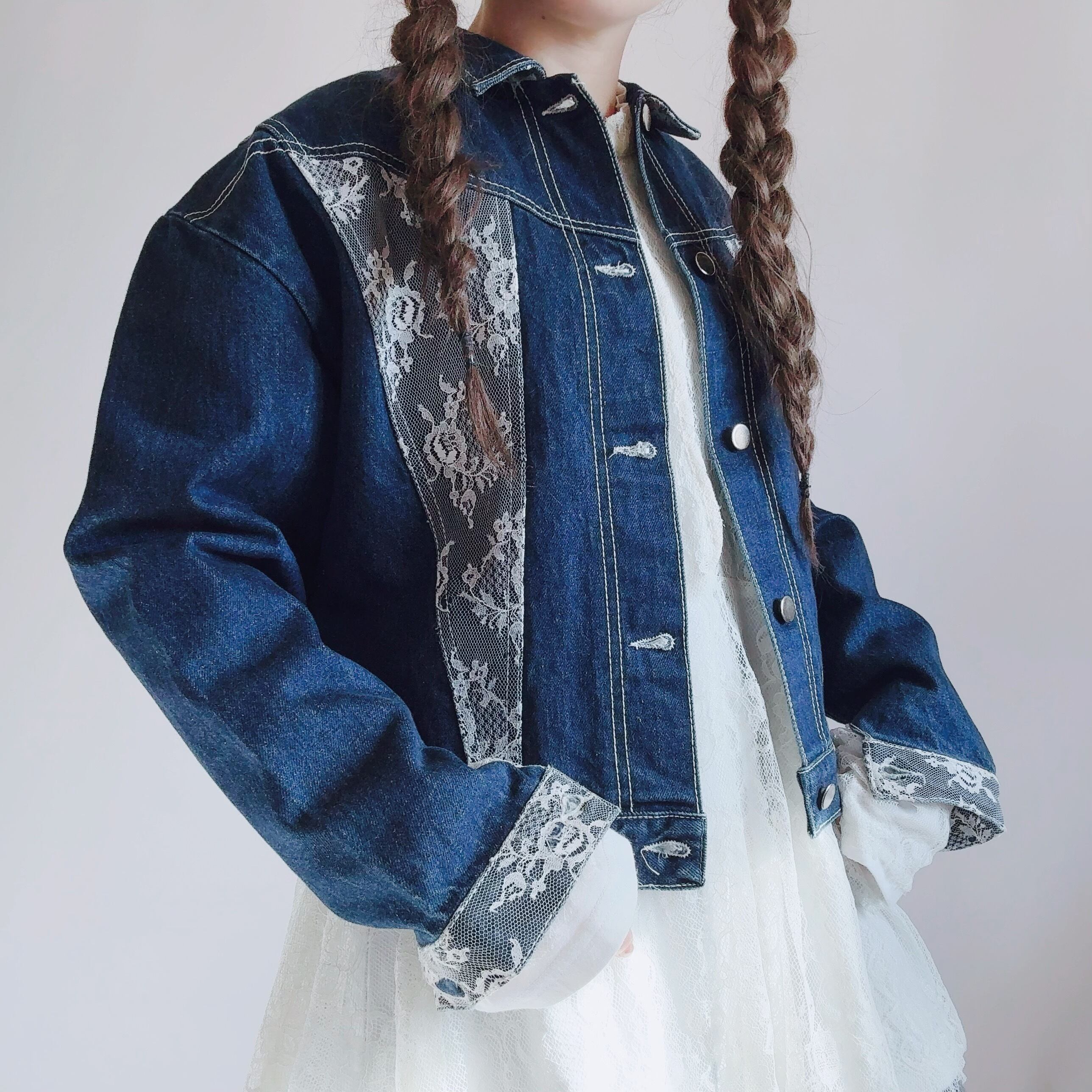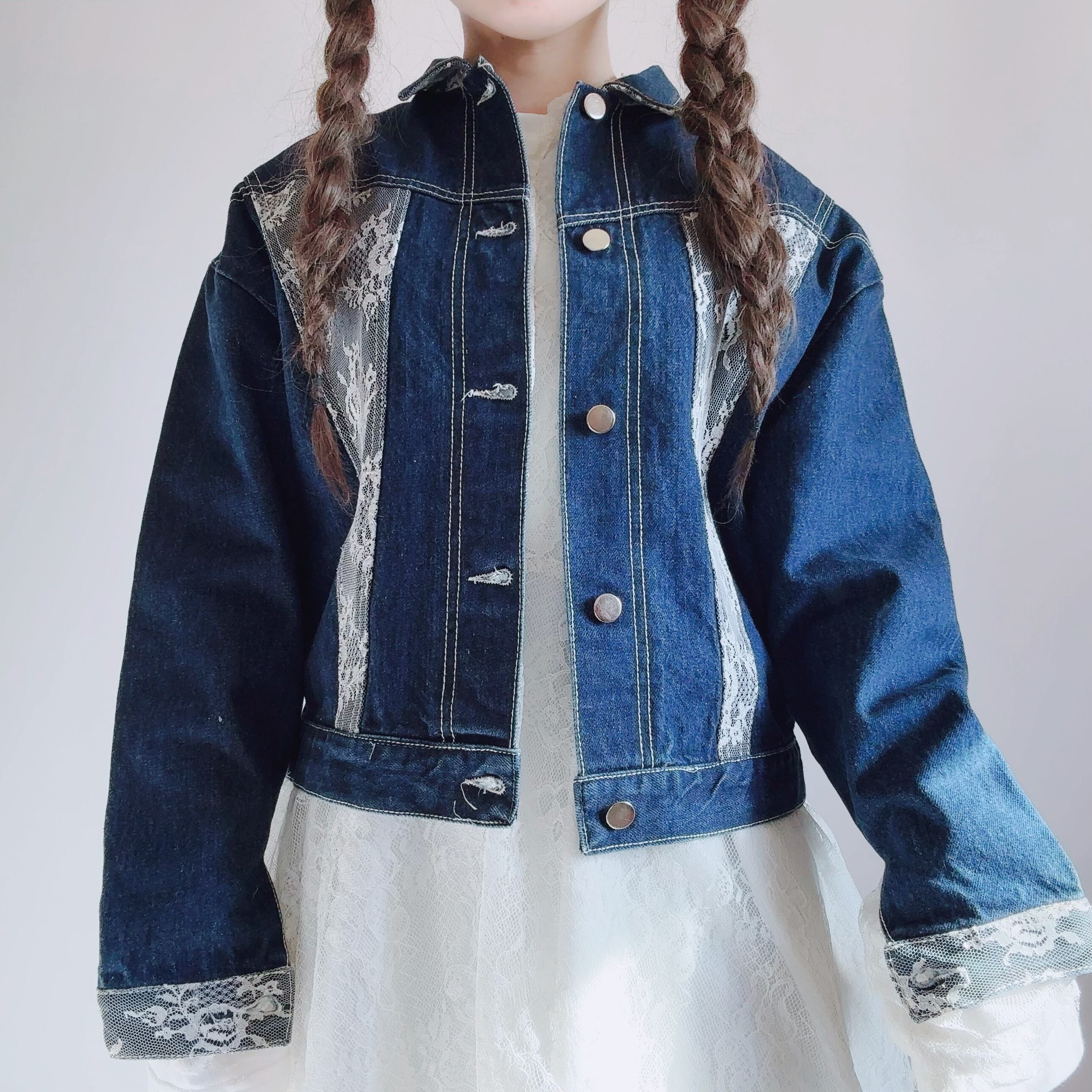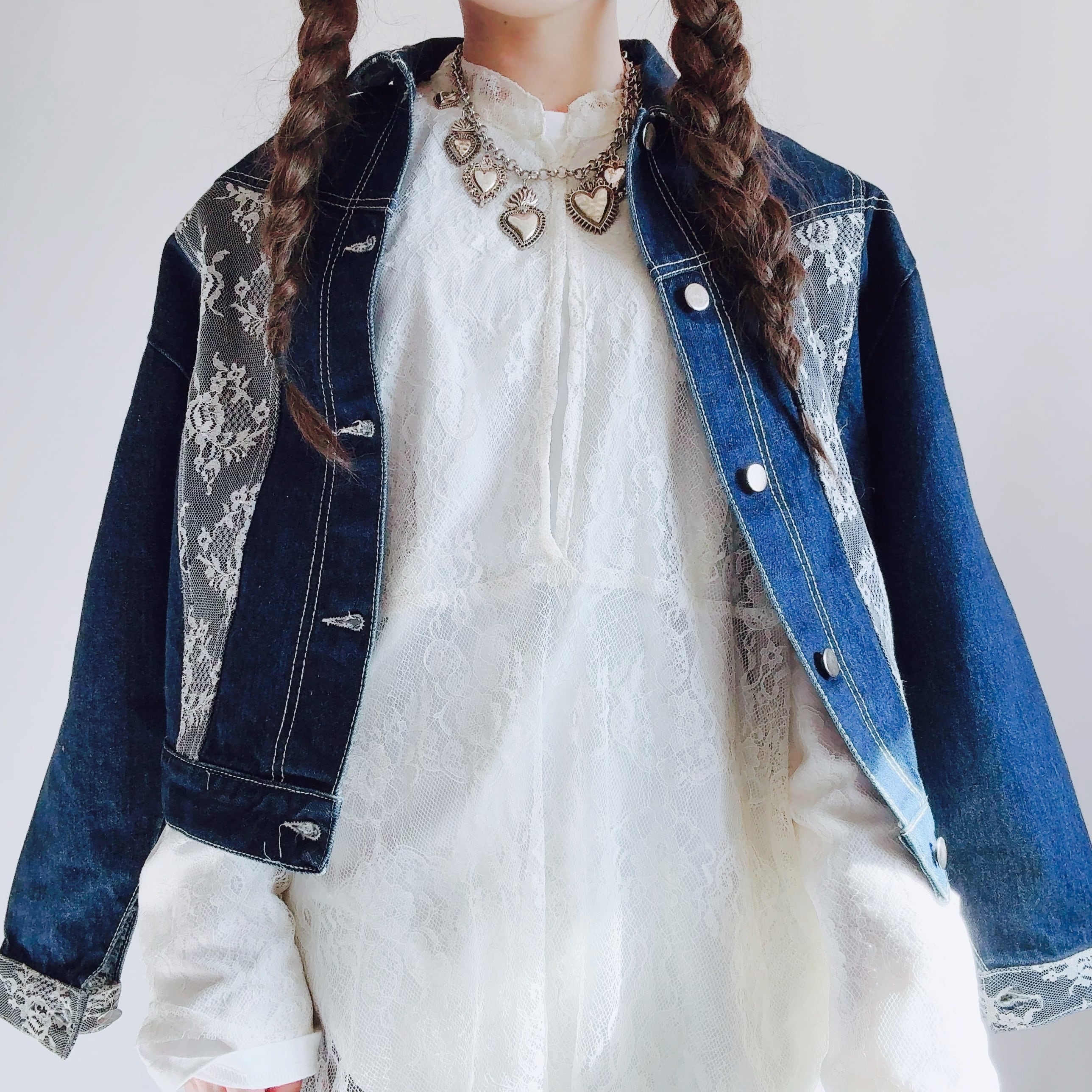 レースがかわいい濃いブルーのデニムジャケット !☺︎