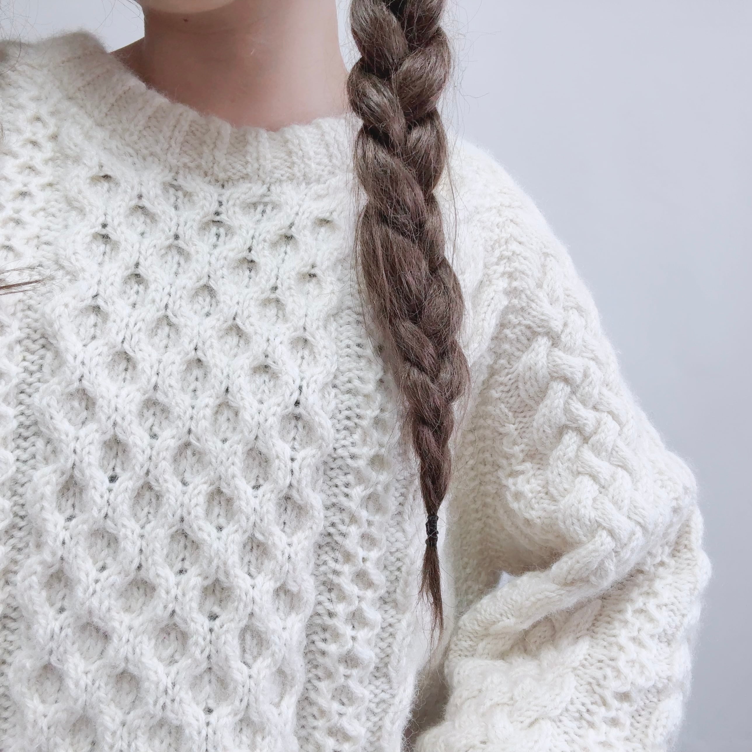 クリームがかった自然なホワイトで、ハンドニットならではの柔らかい表情が魅力です◎