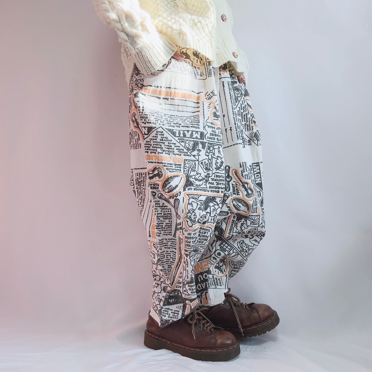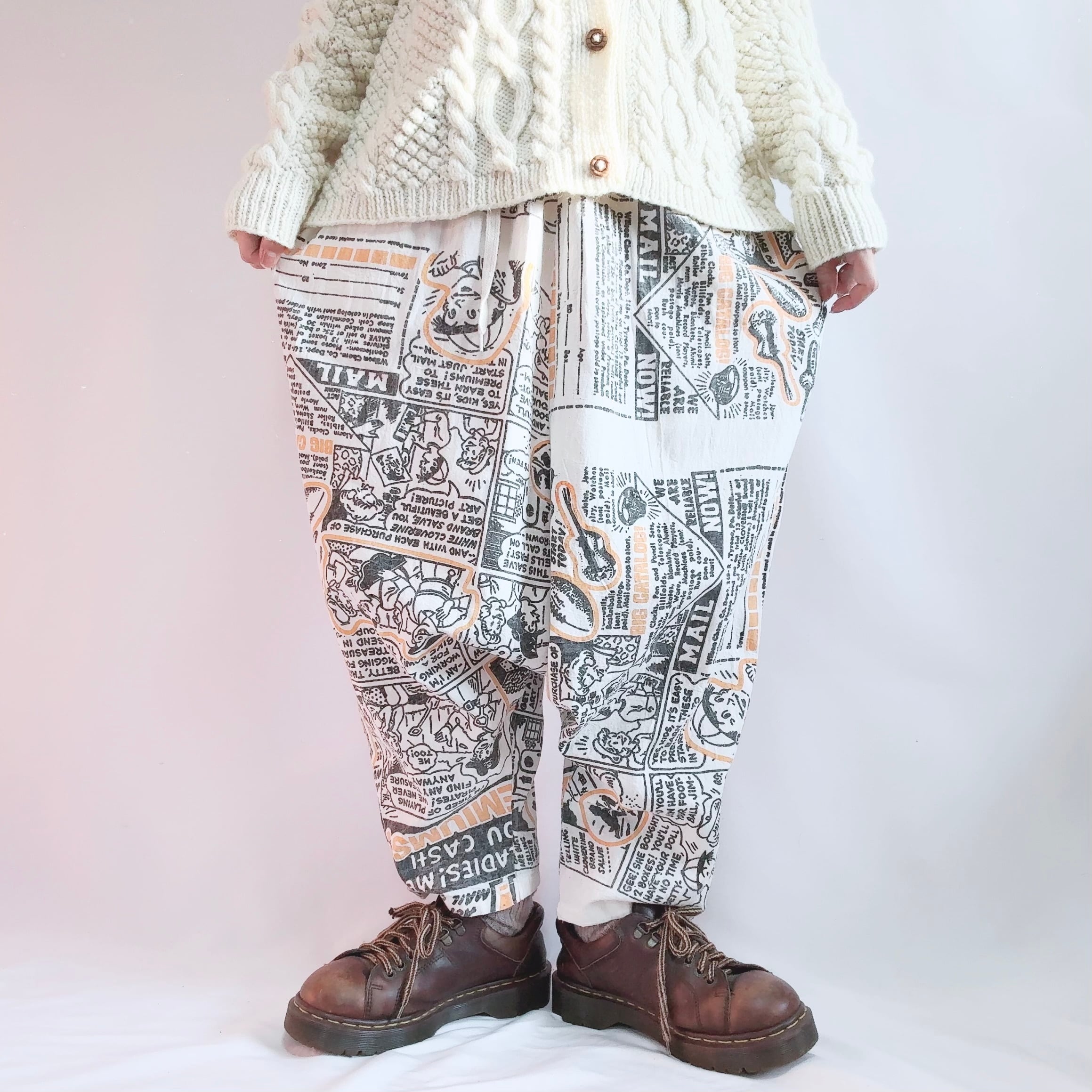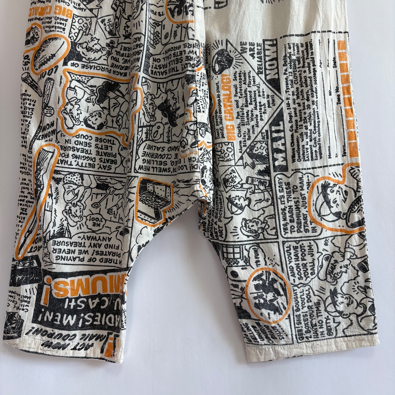 昔の新聞広告風のコミック・イラストが全面にプリントされている、