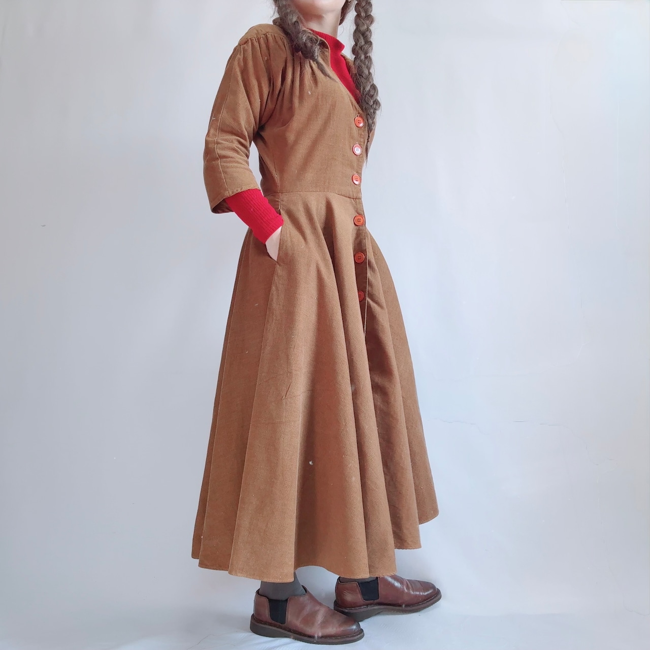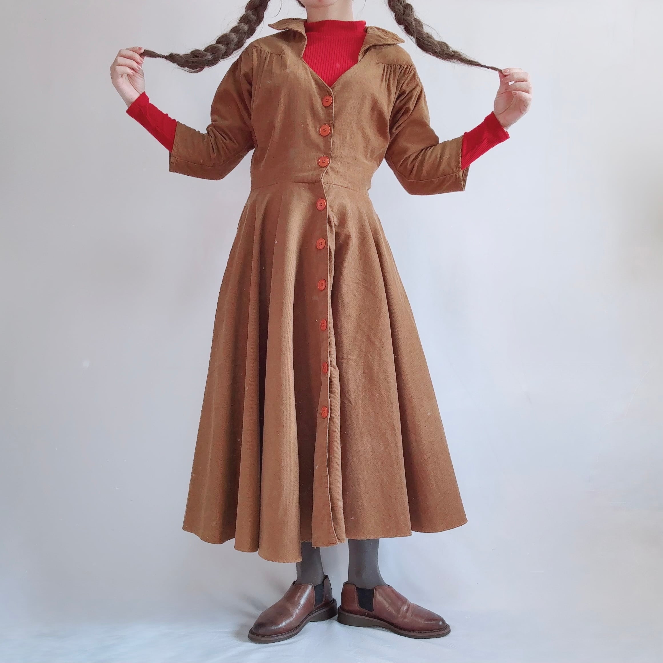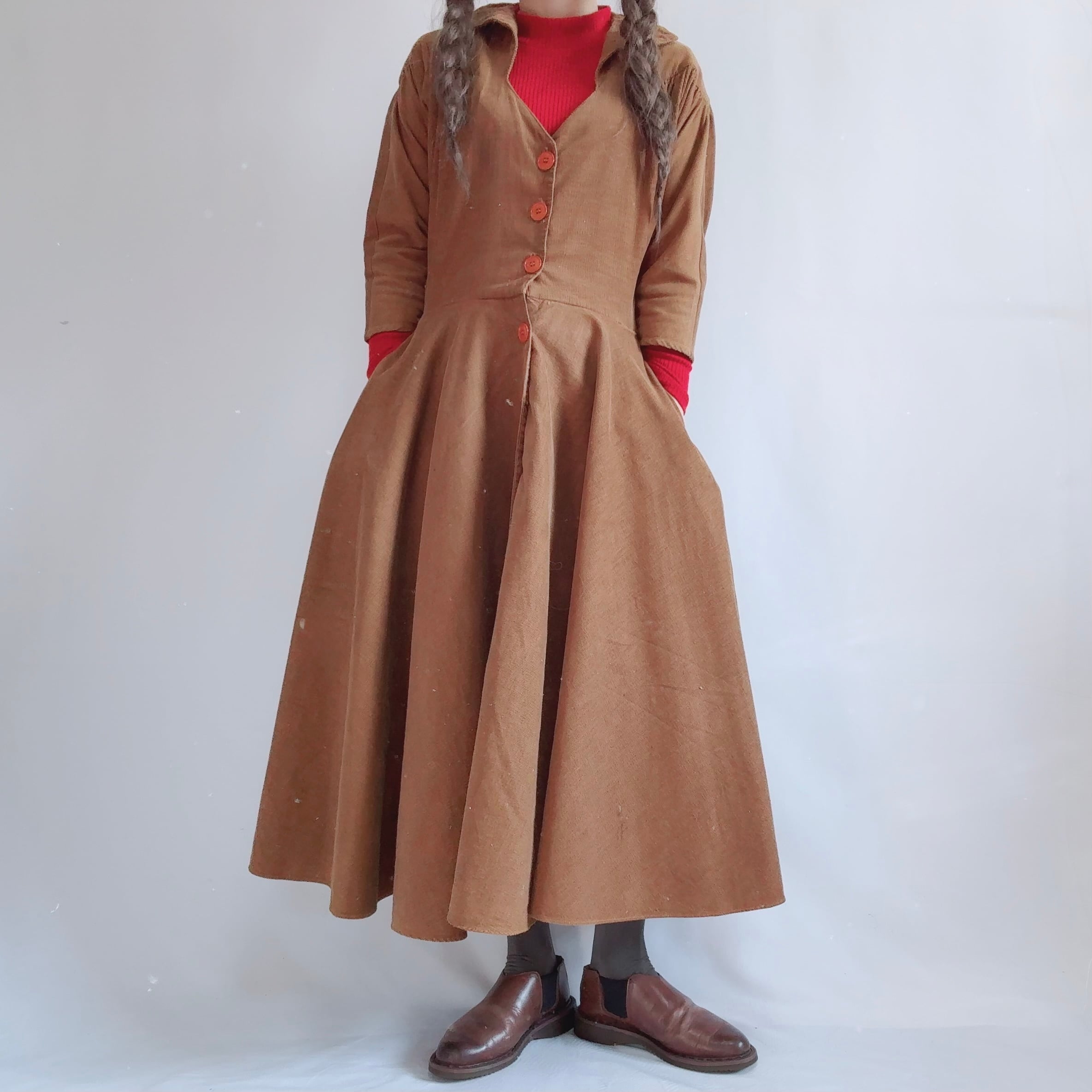あたたかみのあるブラウンカラーのコーデュロイワンピース!