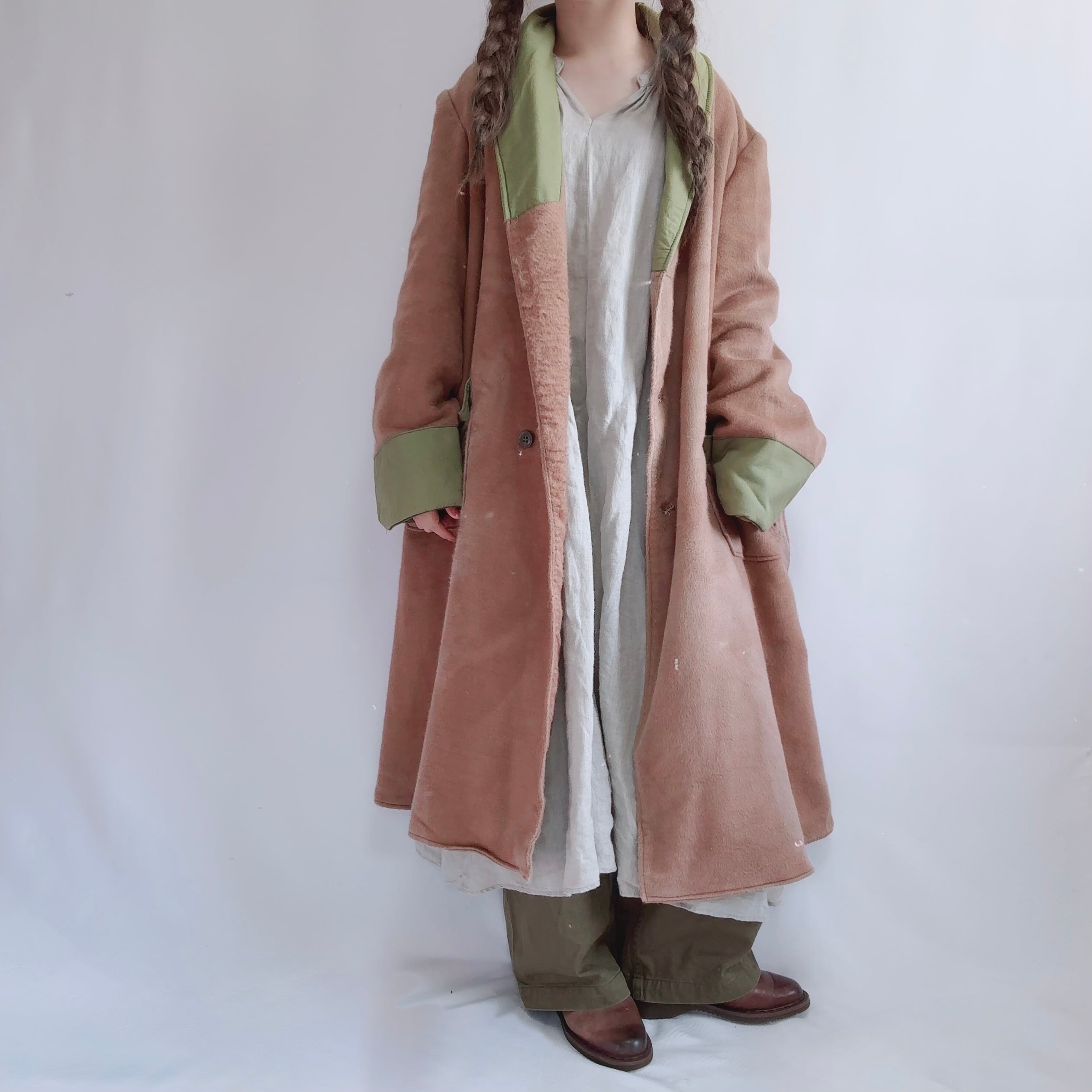 オリーブカラーの切り替えが施された、無骨ながらも温かみのある雰囲気の良いガウンです!