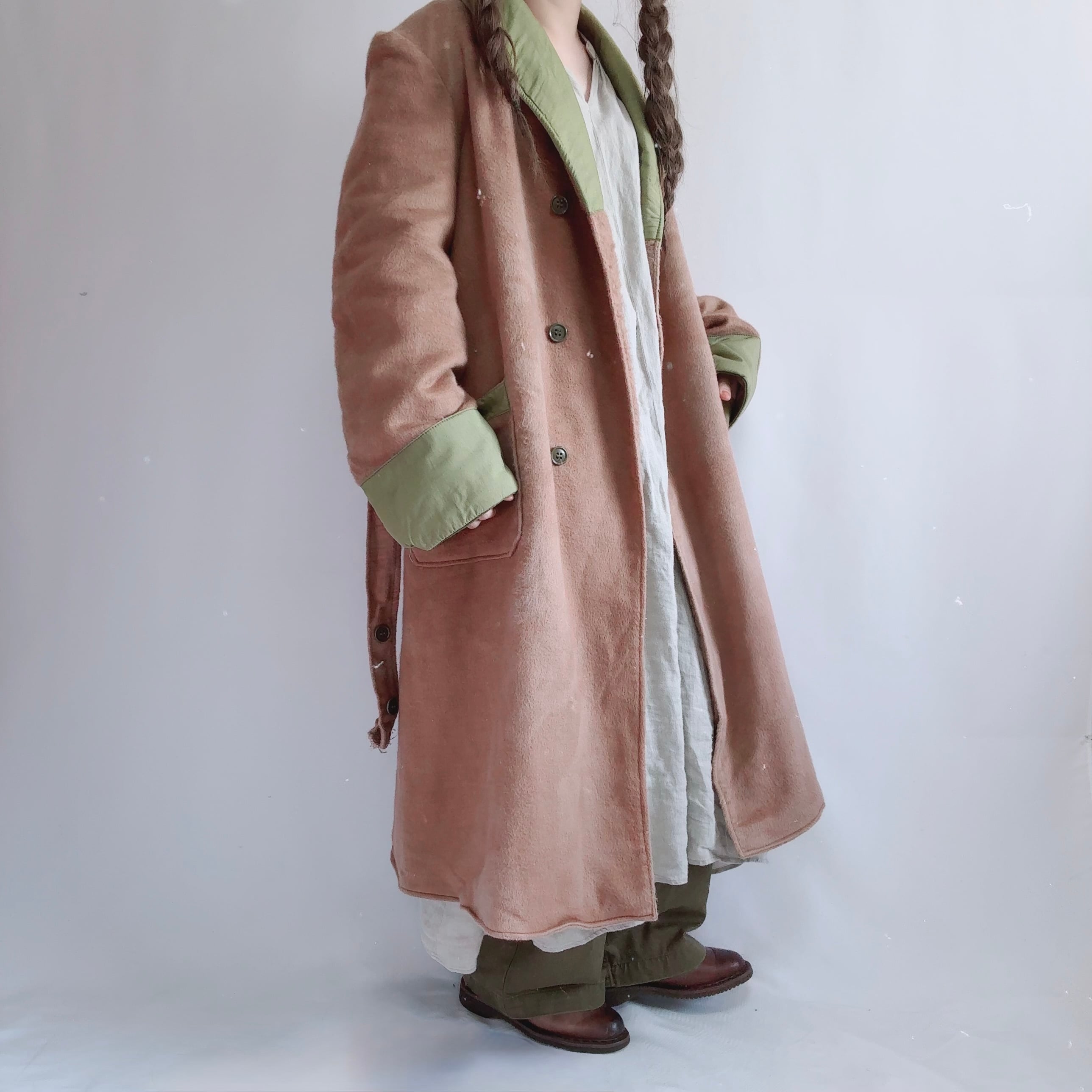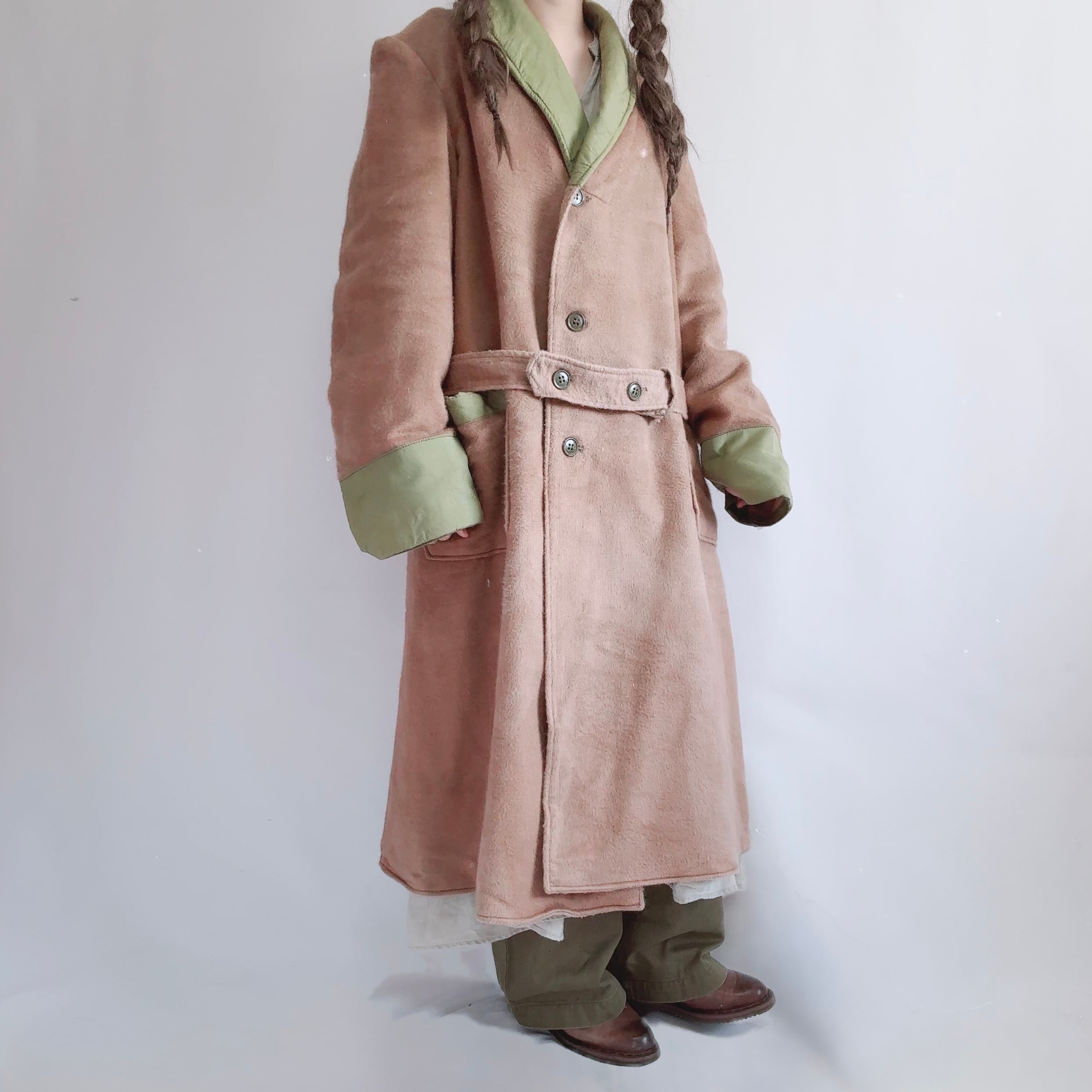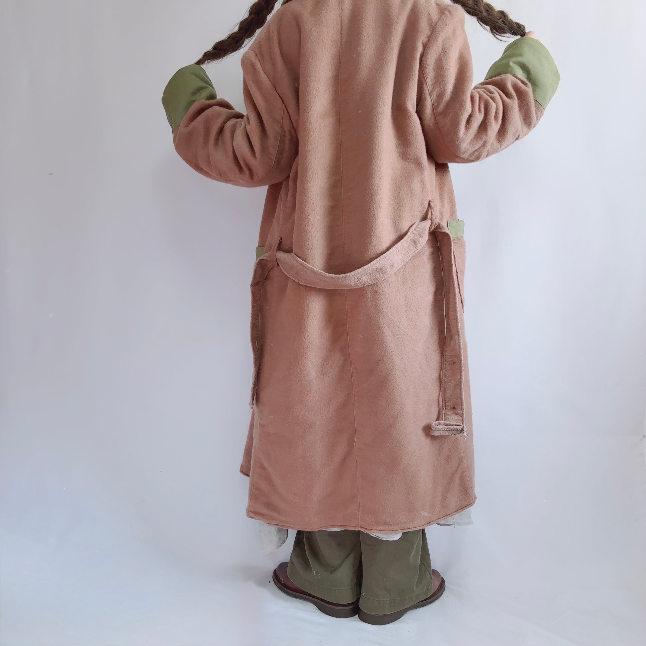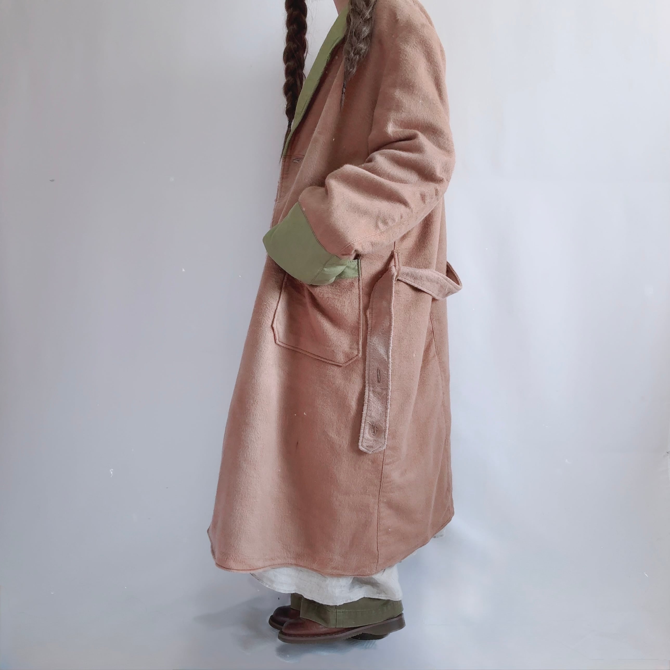 本来は施設内衣料として作られたものですが、ロング丈のシルエットでコート感覚でも着用可能◎