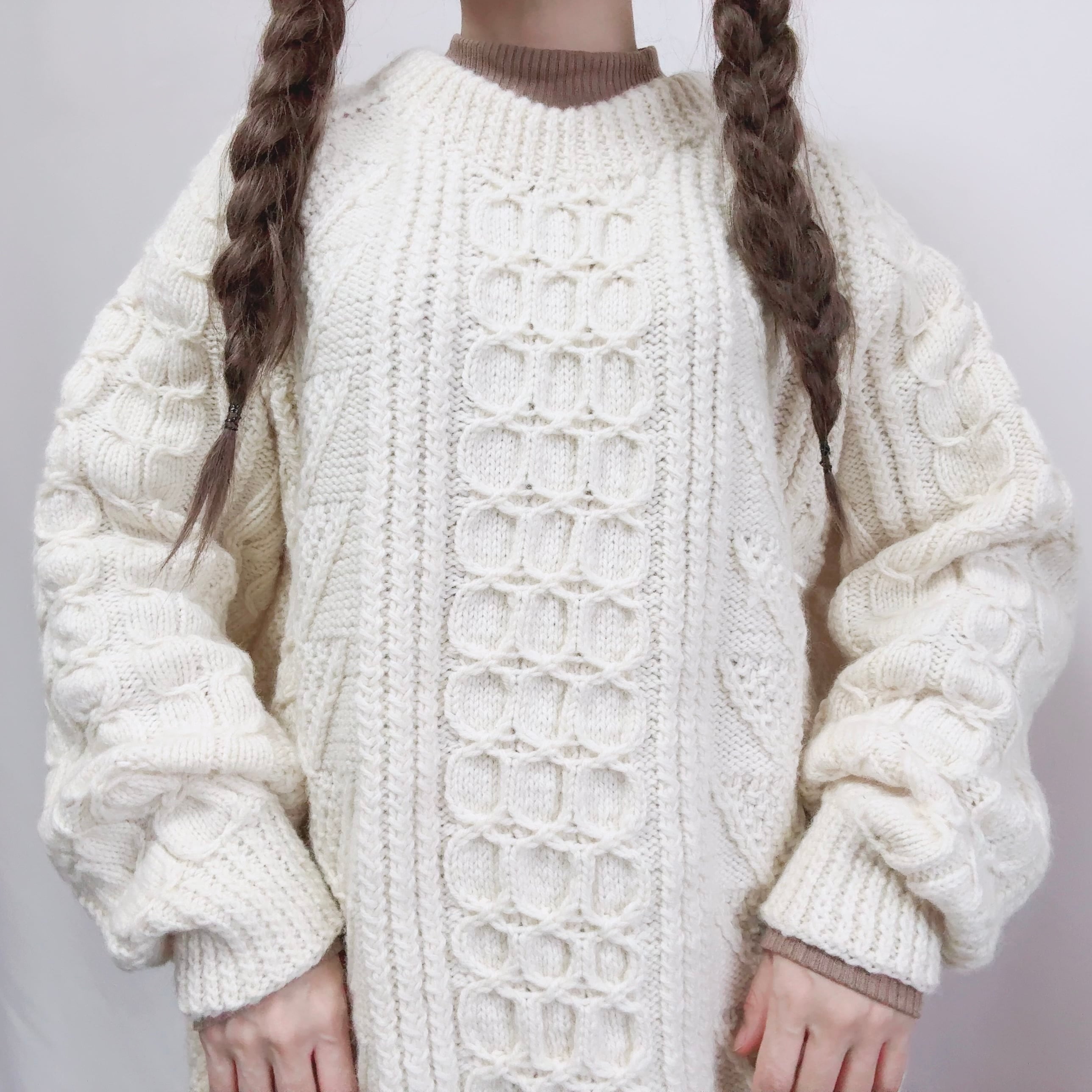 Ireland vintage Carrick Fin Aran Wool Knit Sweater/古着 アイルランド アランニットセーター