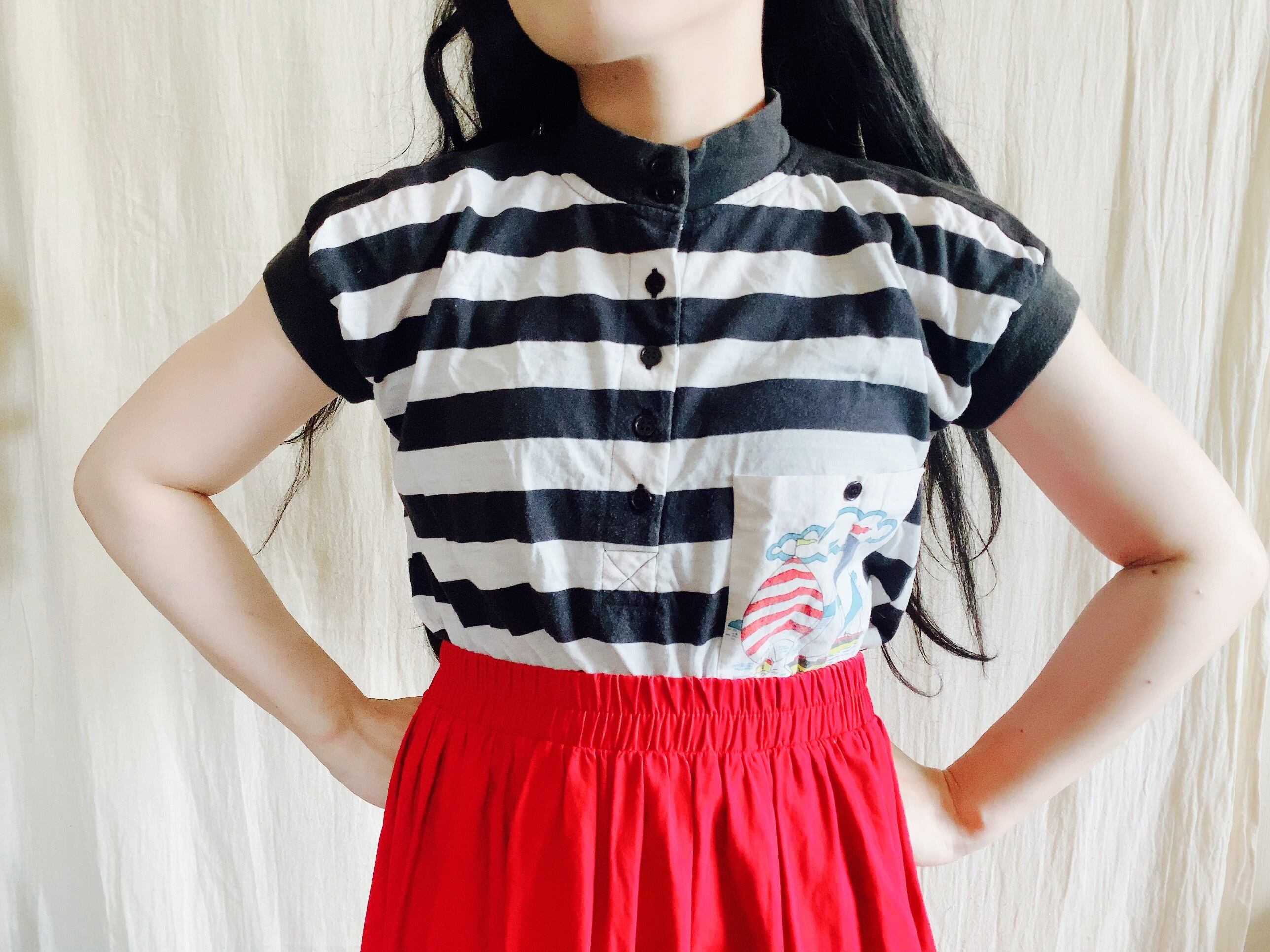 ボーダー柄に胸ポケットのレトロなヨットが素敵です。