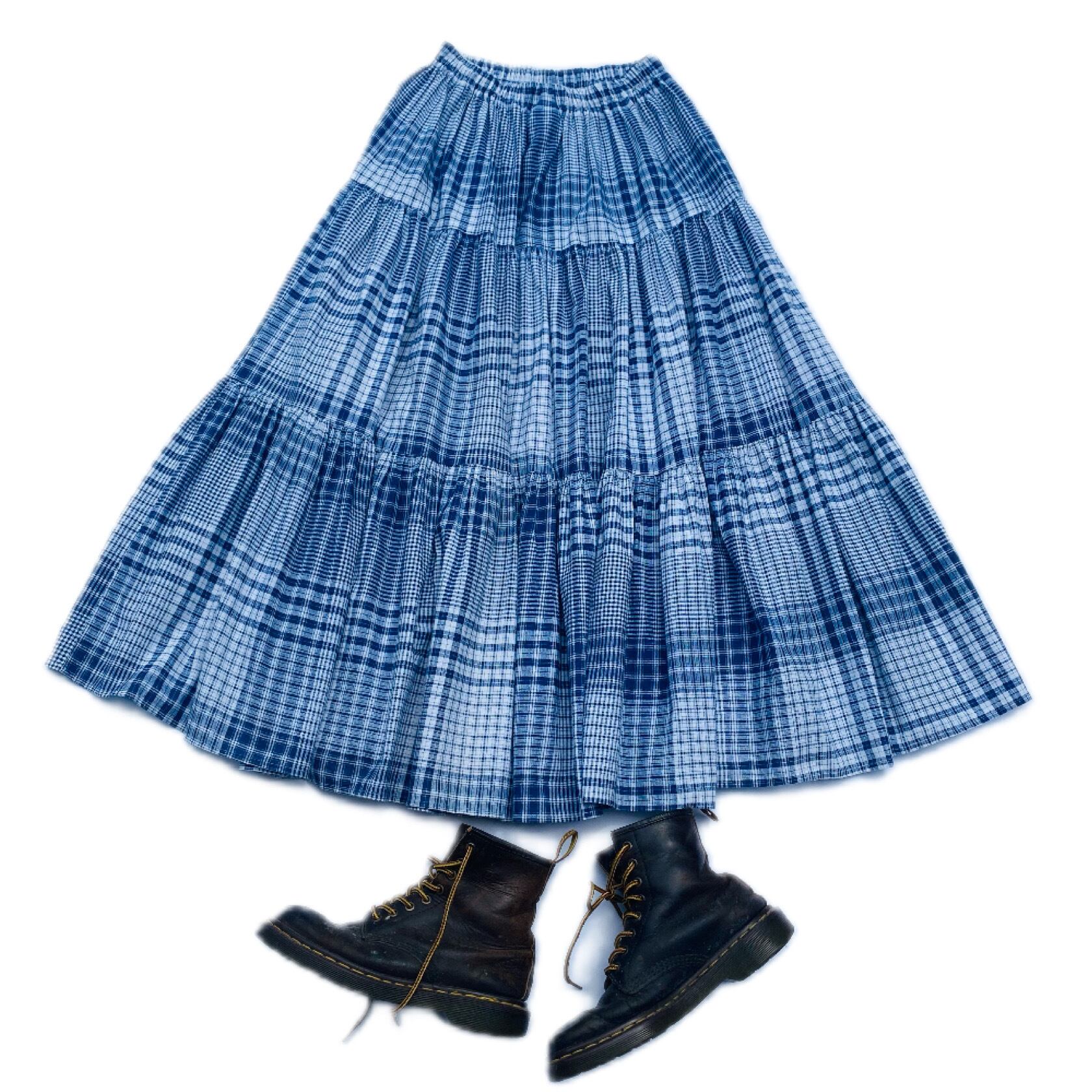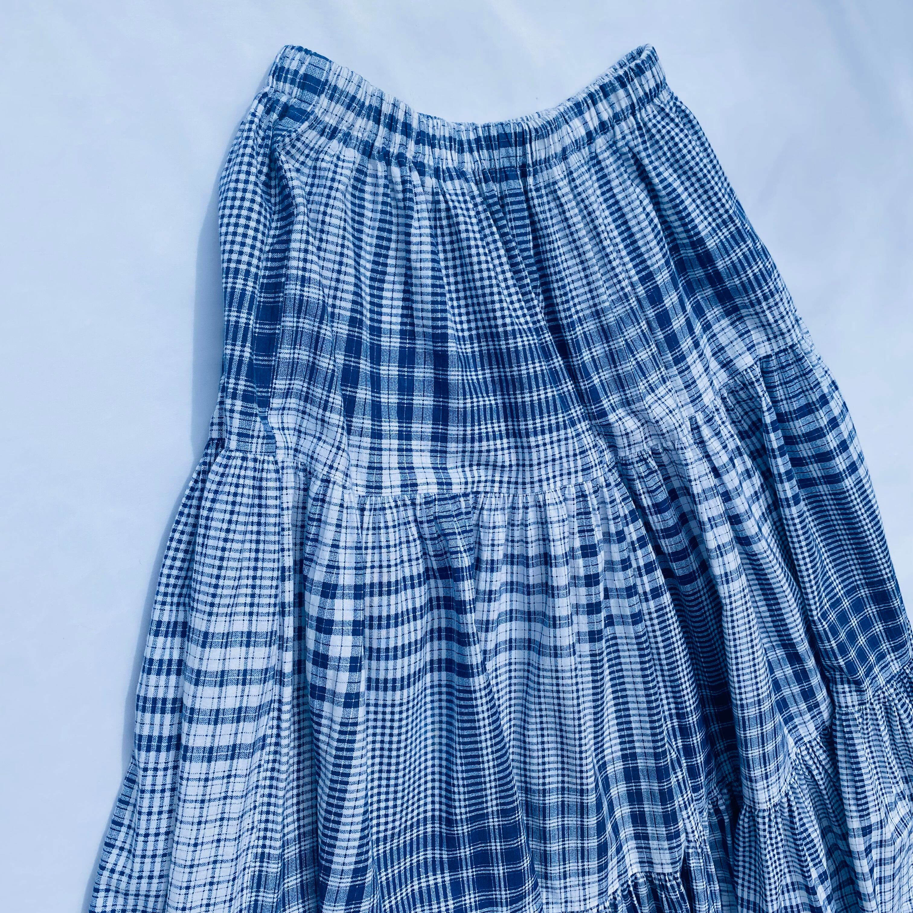 USA “VINTAGE BLUE” Blue check longskirt / アメリカ古着 チェック ティアードスカート