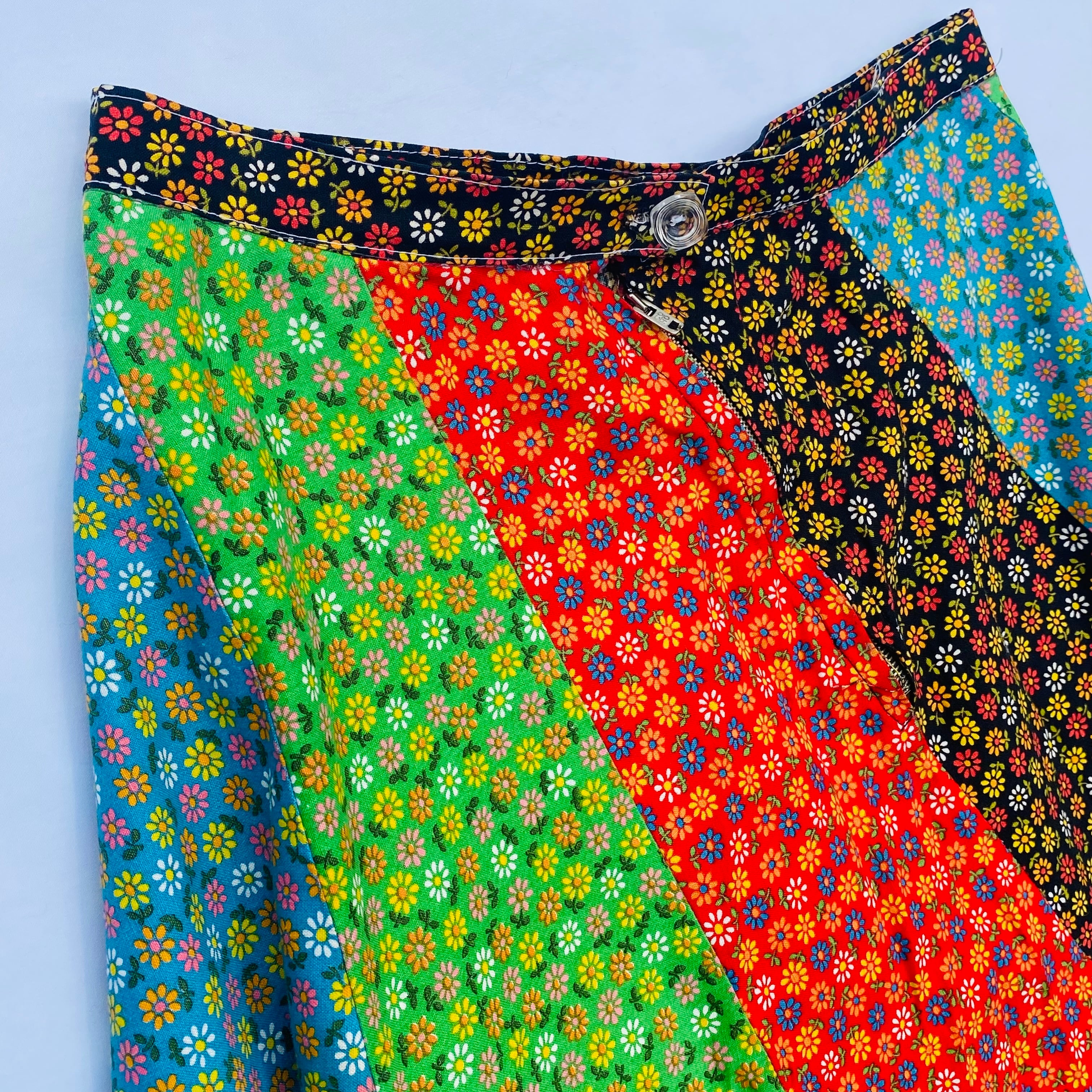 70's “KUPIDO”patchwork flower hippie escargot long skirt / 70年代 古着 パッチワーク マキシ丈 スカート