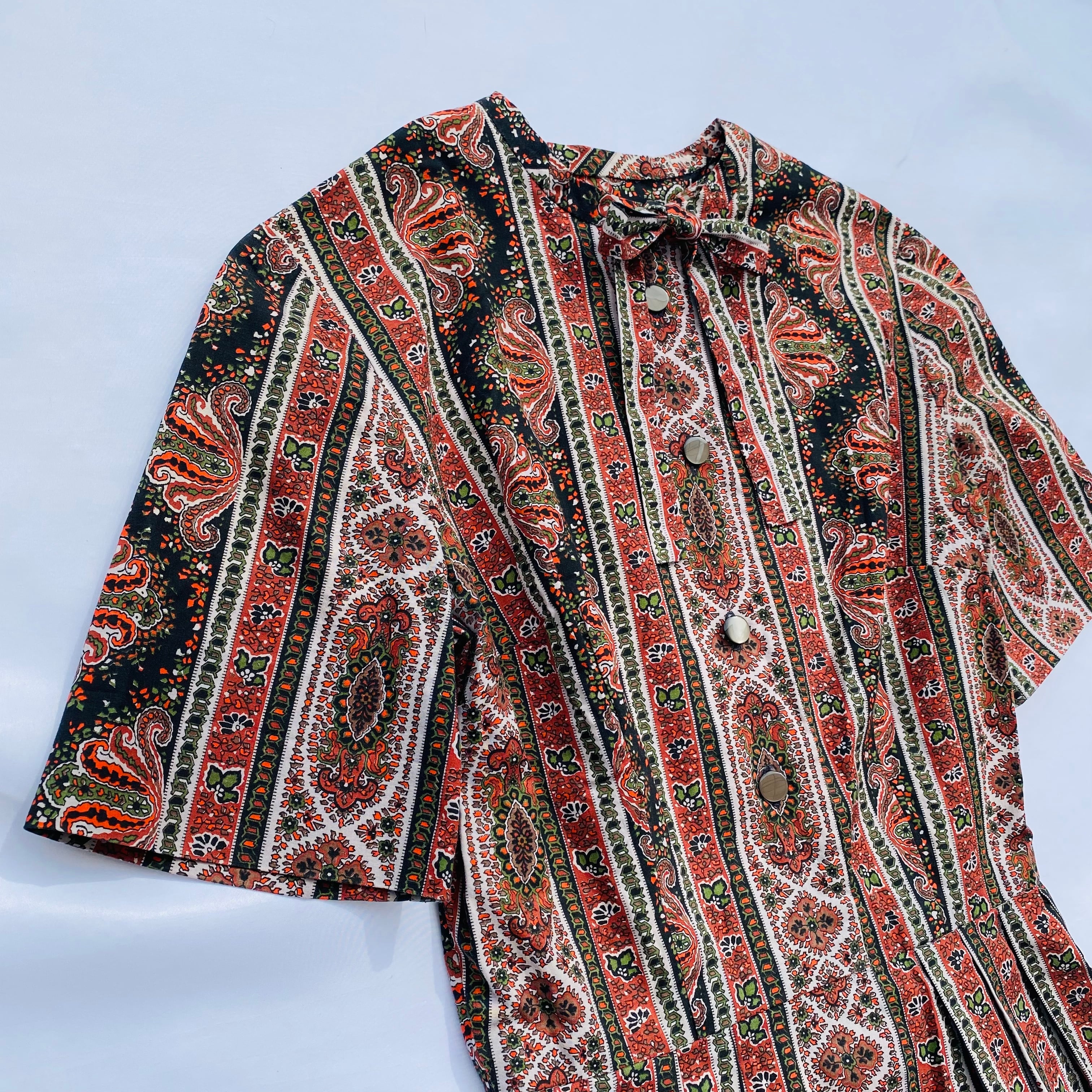 stripe pattern retro one-piece / 古着 レトロ 柄 ワンピース