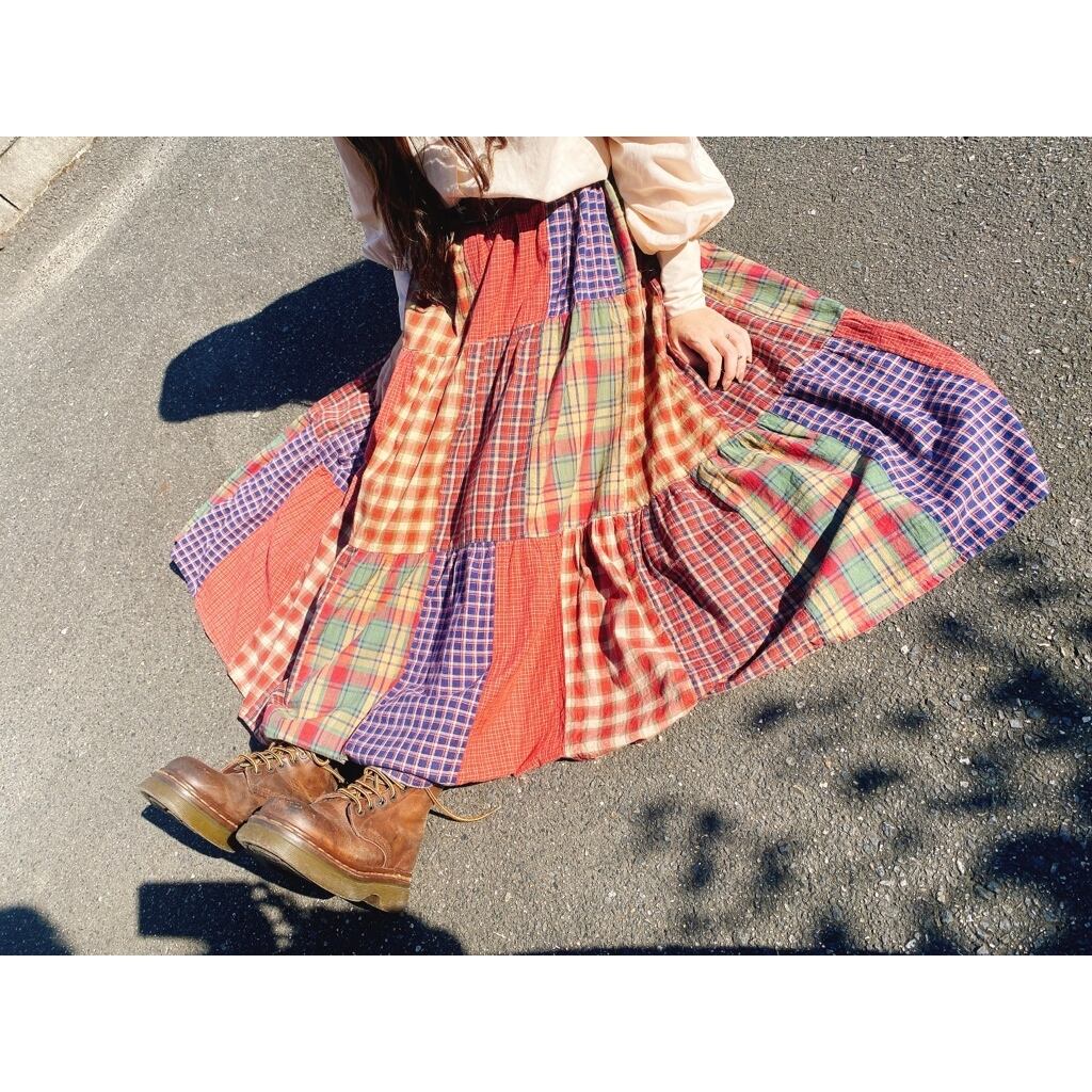 “ERIKA&CO” patchwork check skirt / 古着 パッチワーク ロングスカート