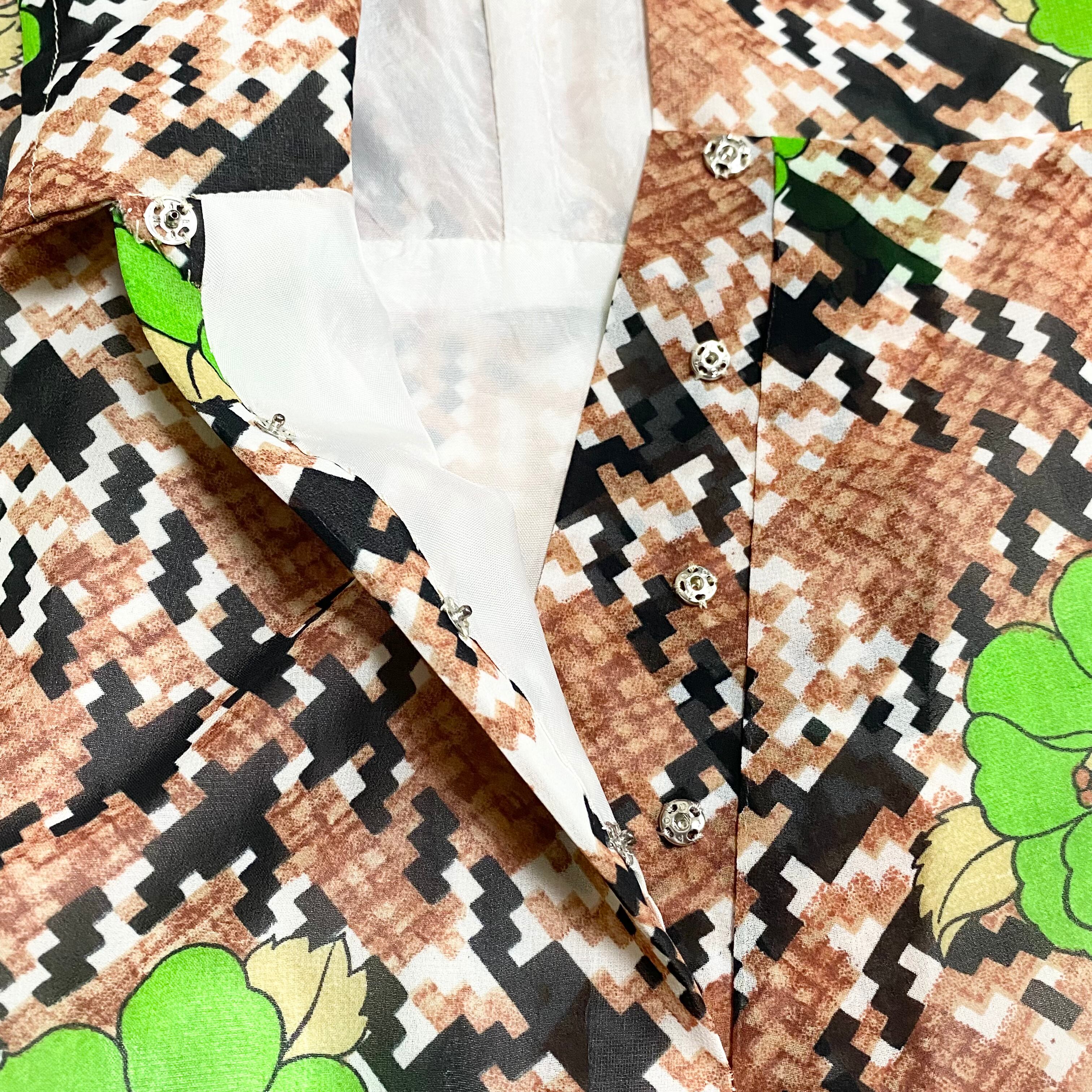 flower×check retro one-piece / 古着 昭和レトロ ワンピース