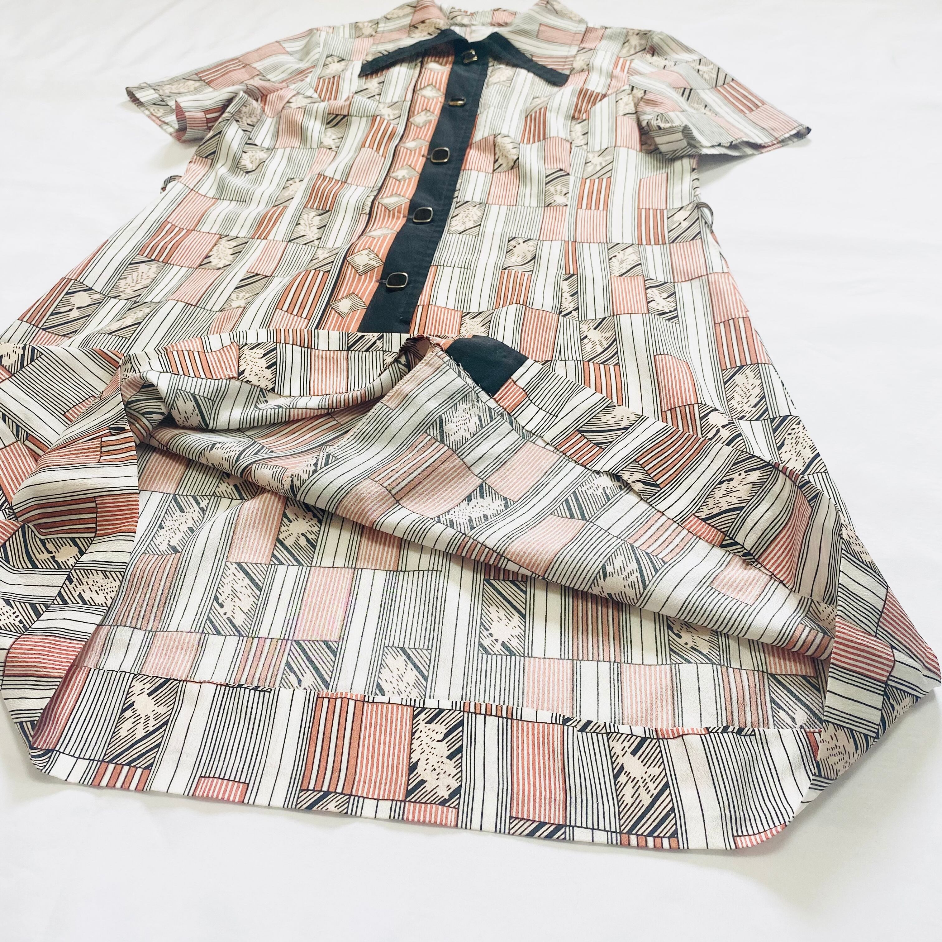 Japan stripe Aline retro one-piece / 古着 昭和レトロ ワンピース