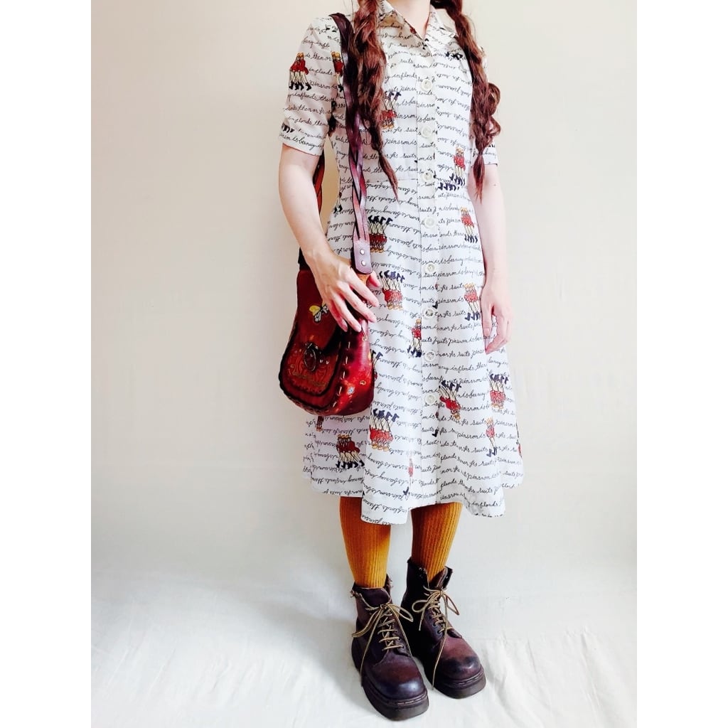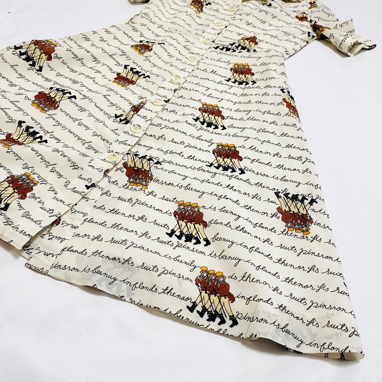 昭和レトロ兵隊柄ポリエステルワンピースです。