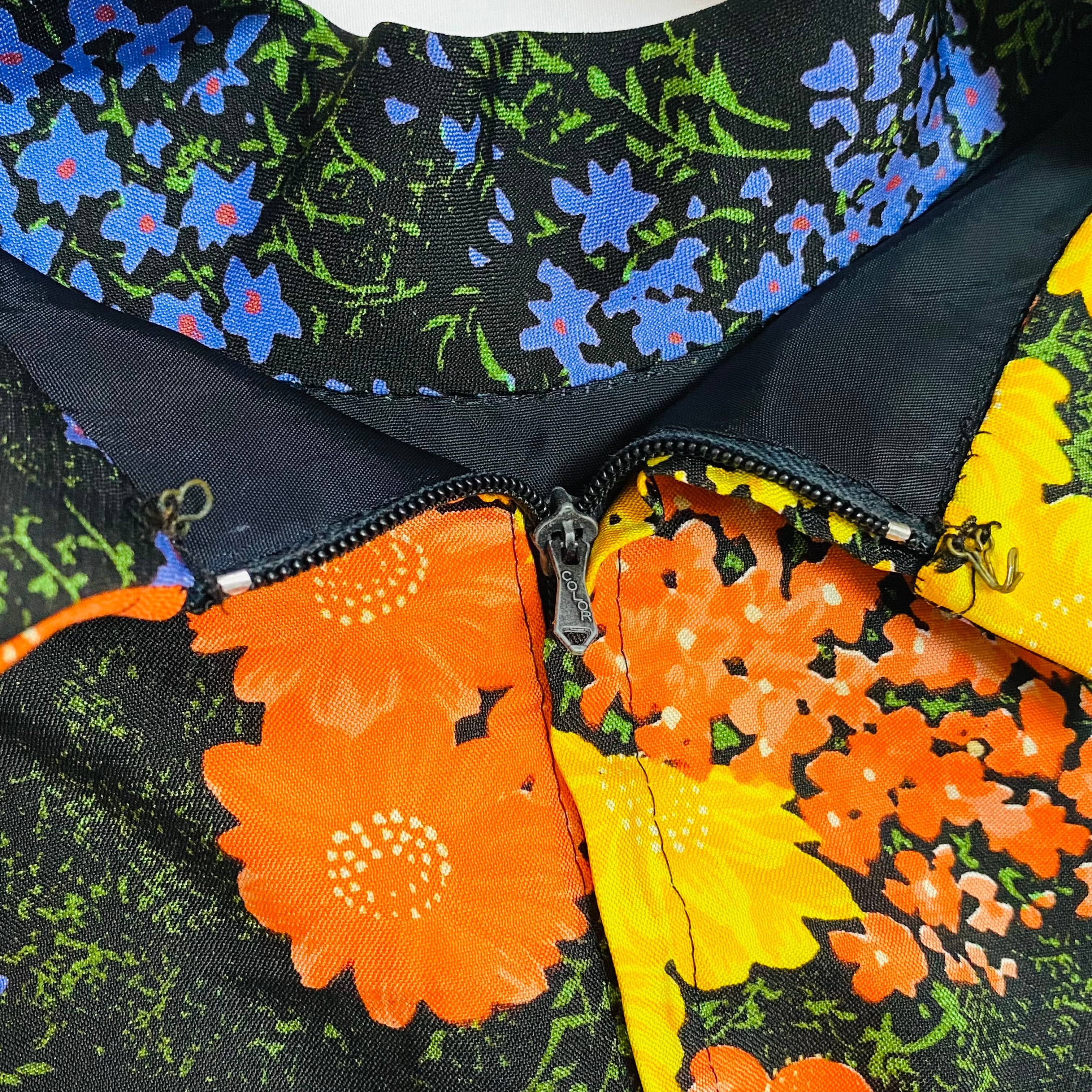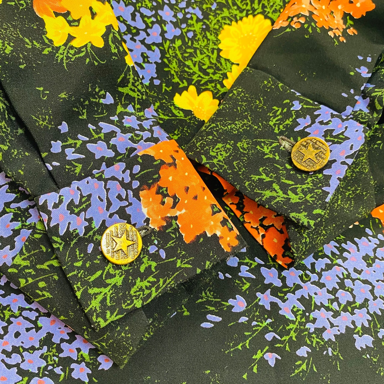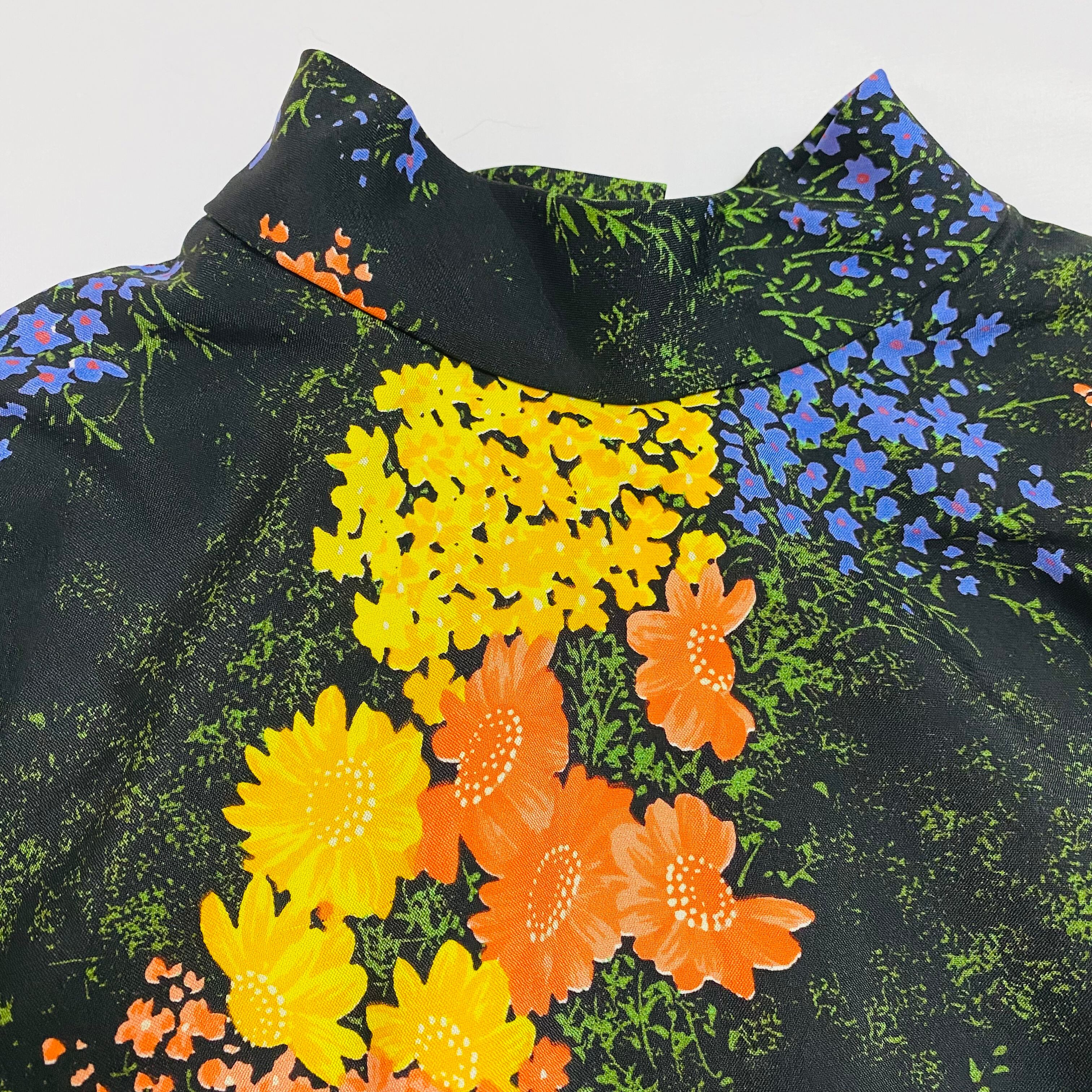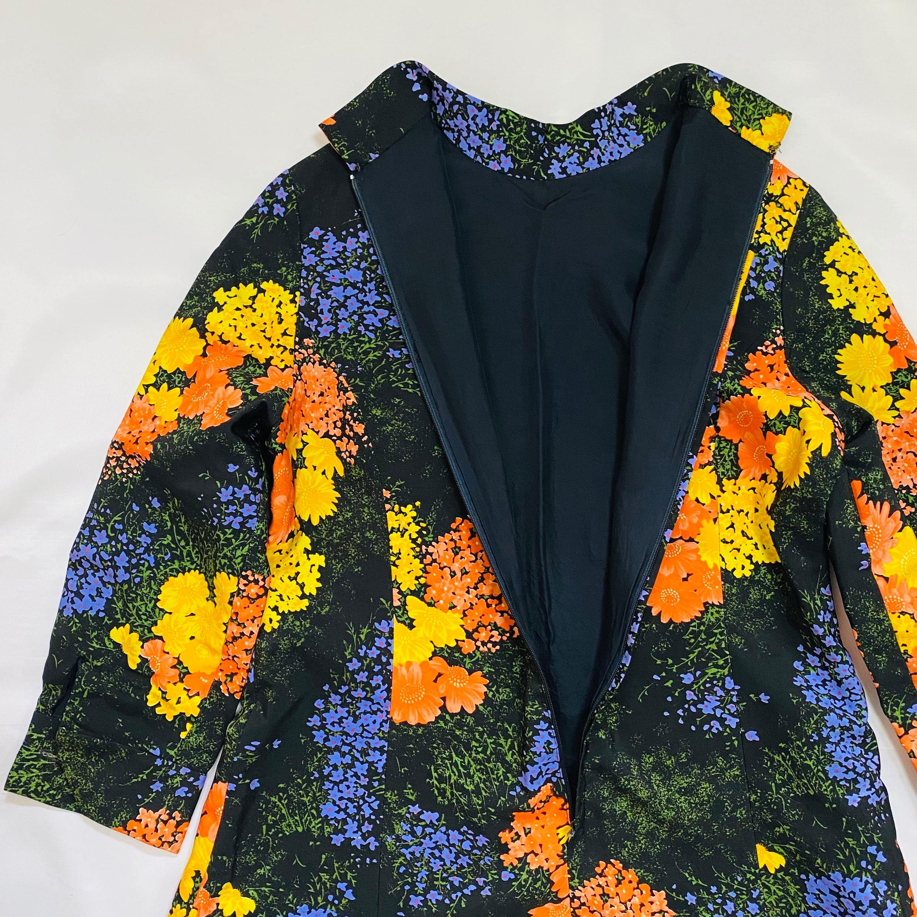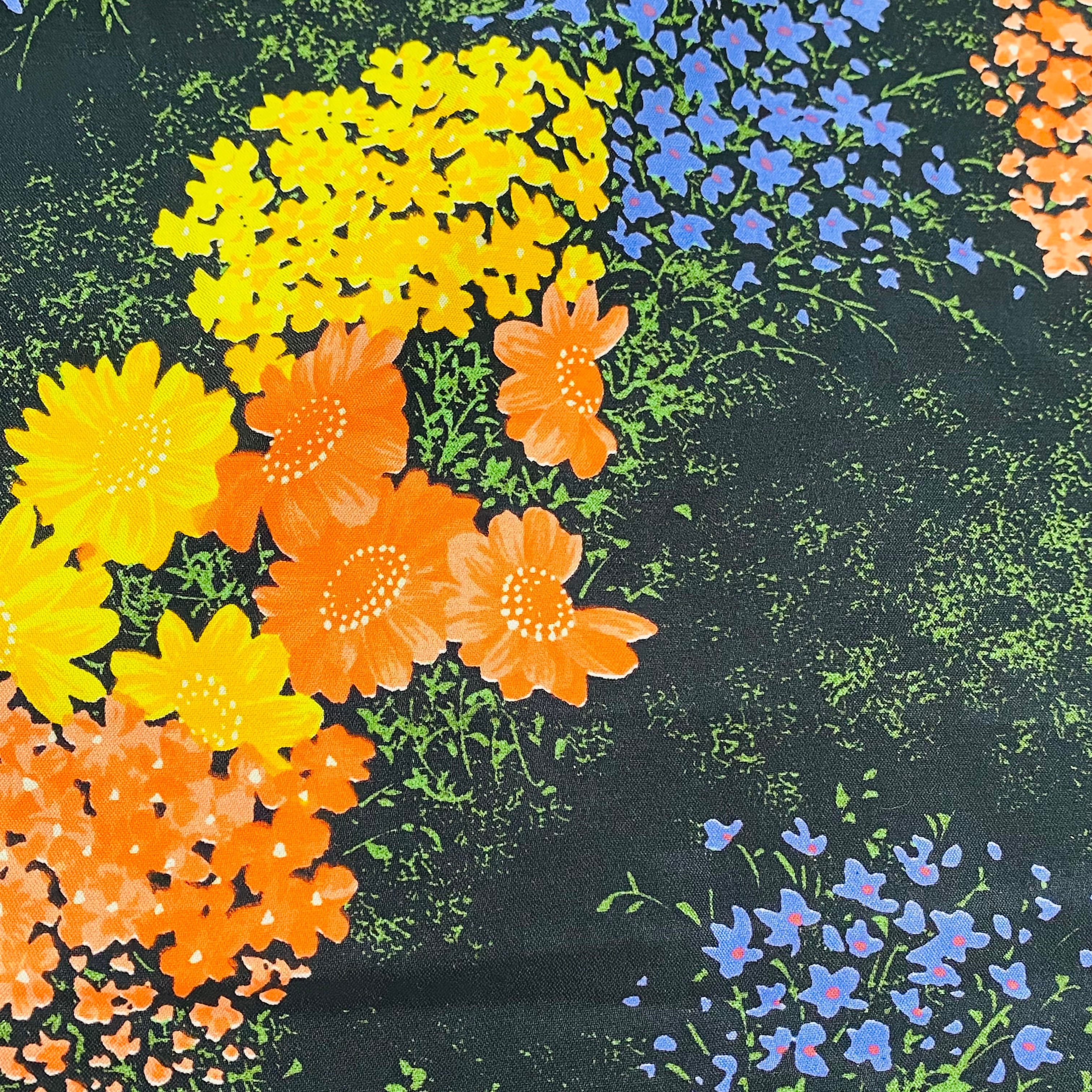 ブラックベースに鮮やかな花の総柄が綺麗で