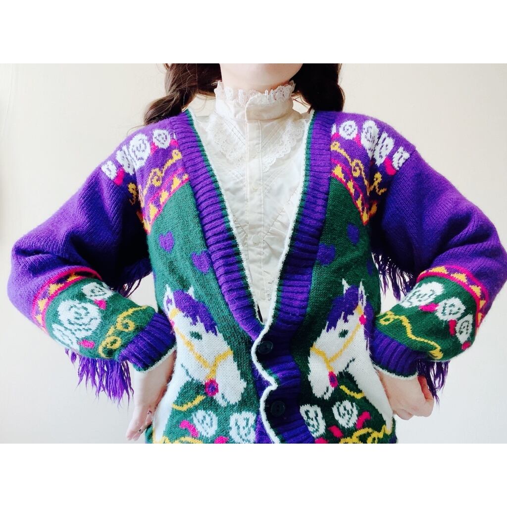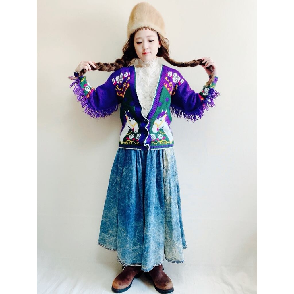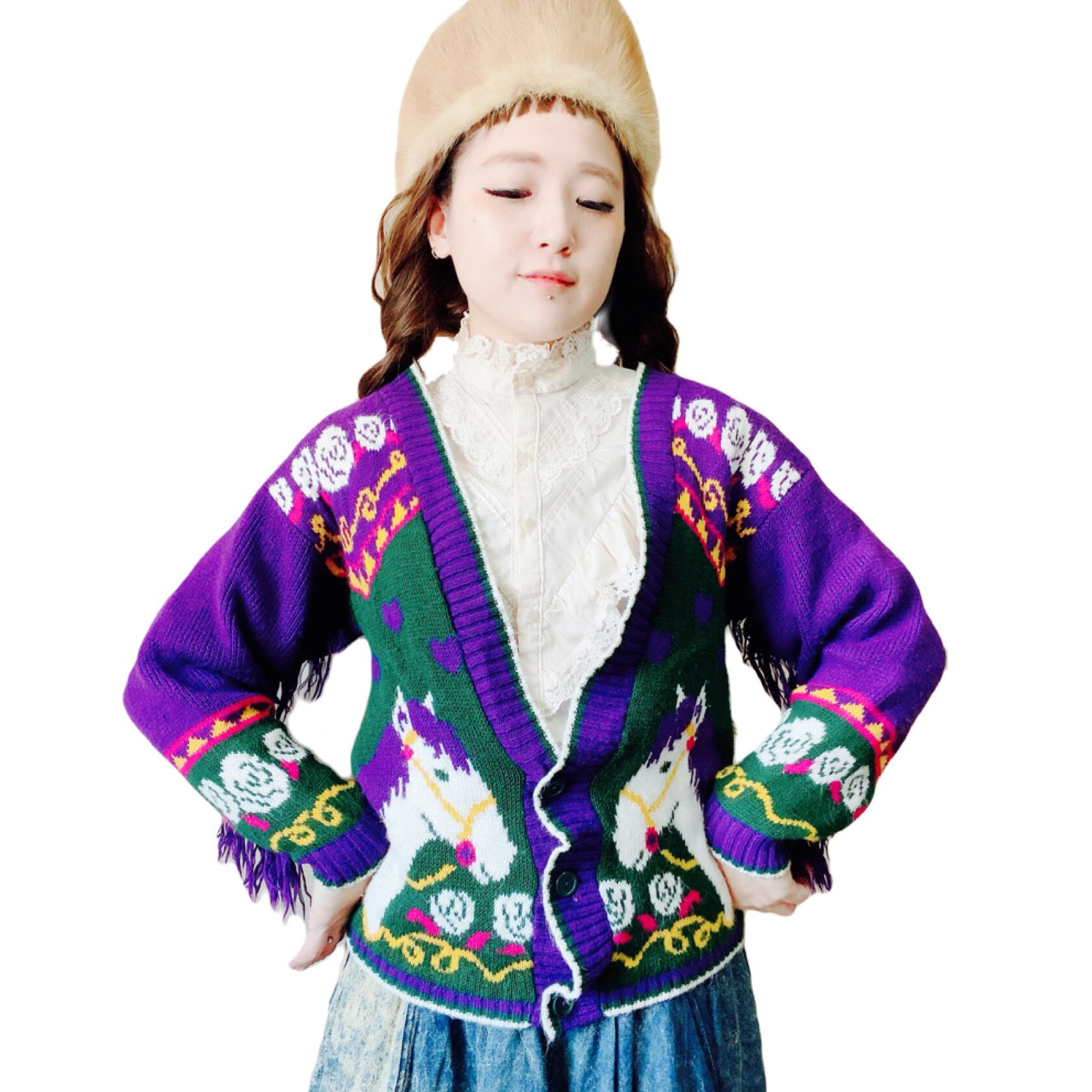 USA “FREEZE FRAME” white horse knit cardigan / アメリカ古着 白馬 カーディガン