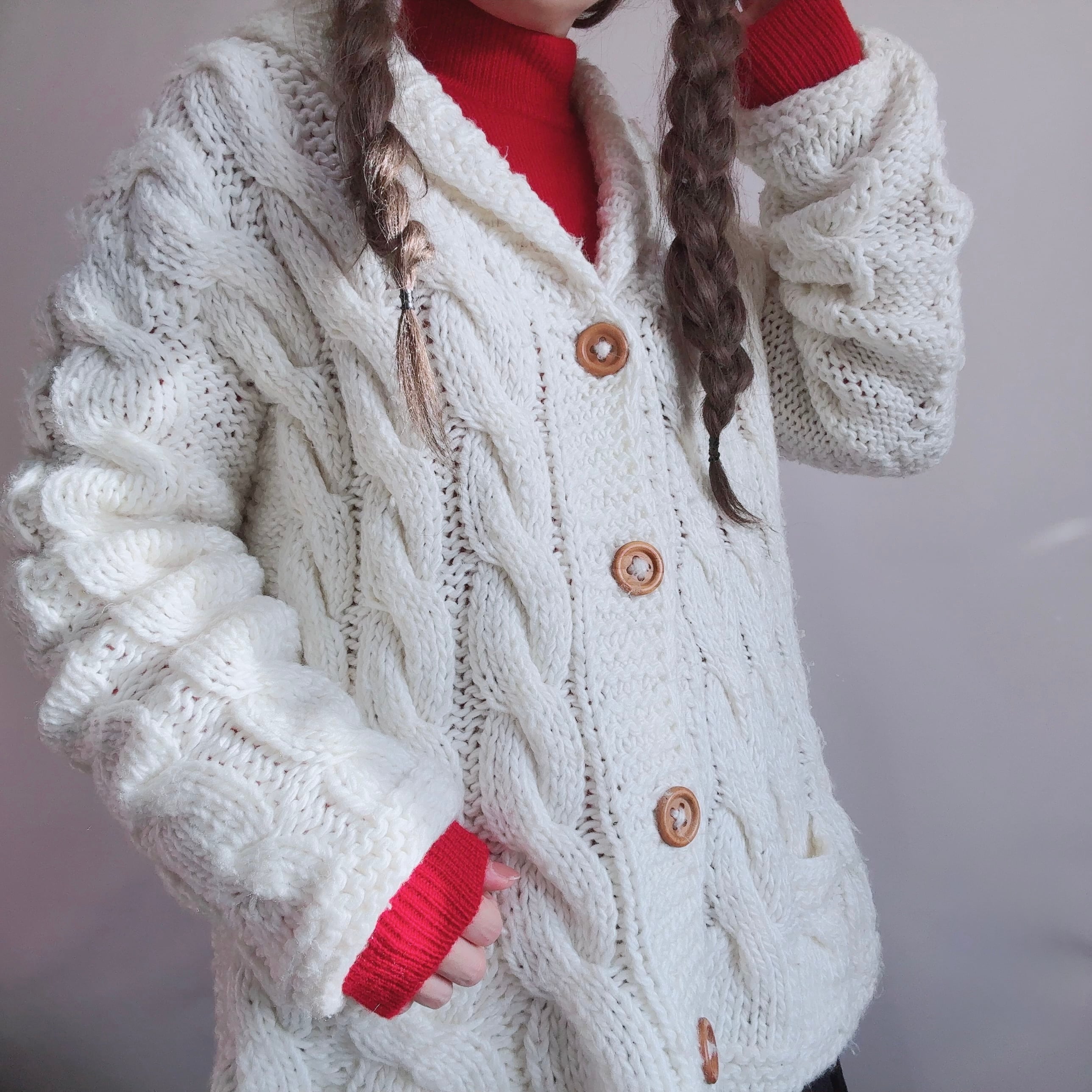 “HAND KNITTED FOR Rose K” White knit cardigan / 古着 白 ニット カーディガン