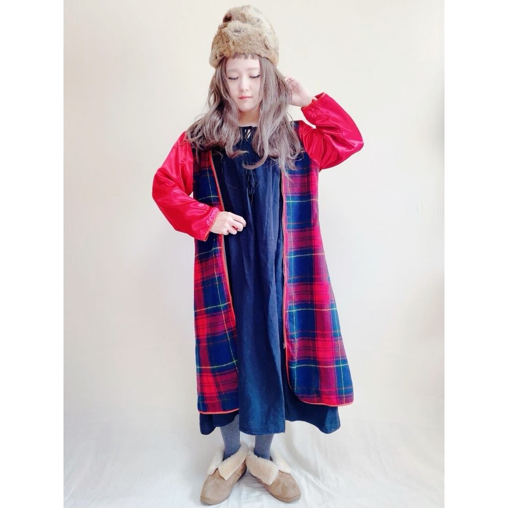 赤いチェック柄がキュートなライナーコートです☽☽☽
