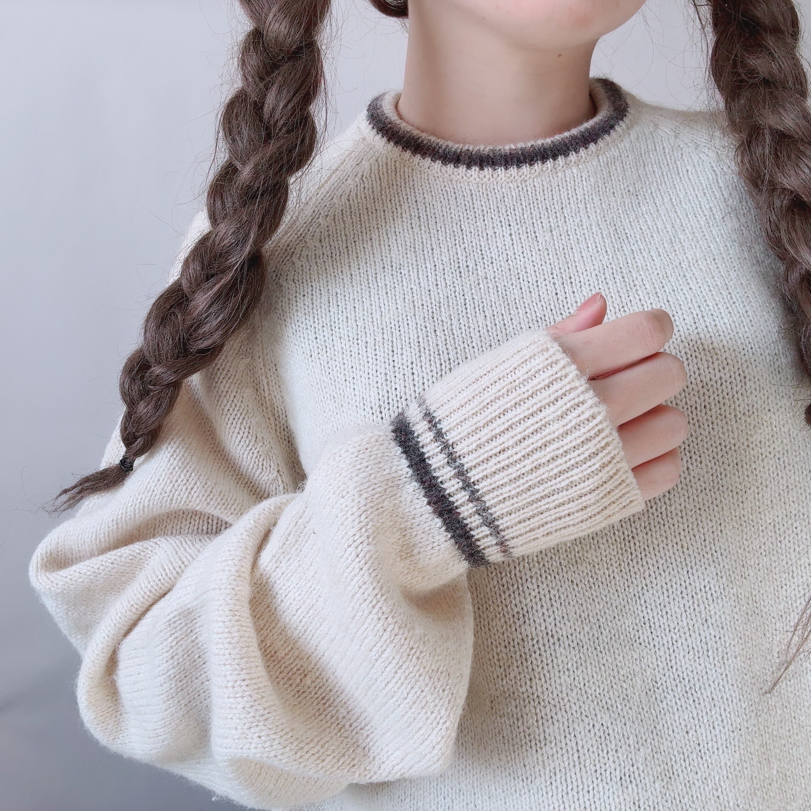 首、袖、裾にラインがはいったデザインの