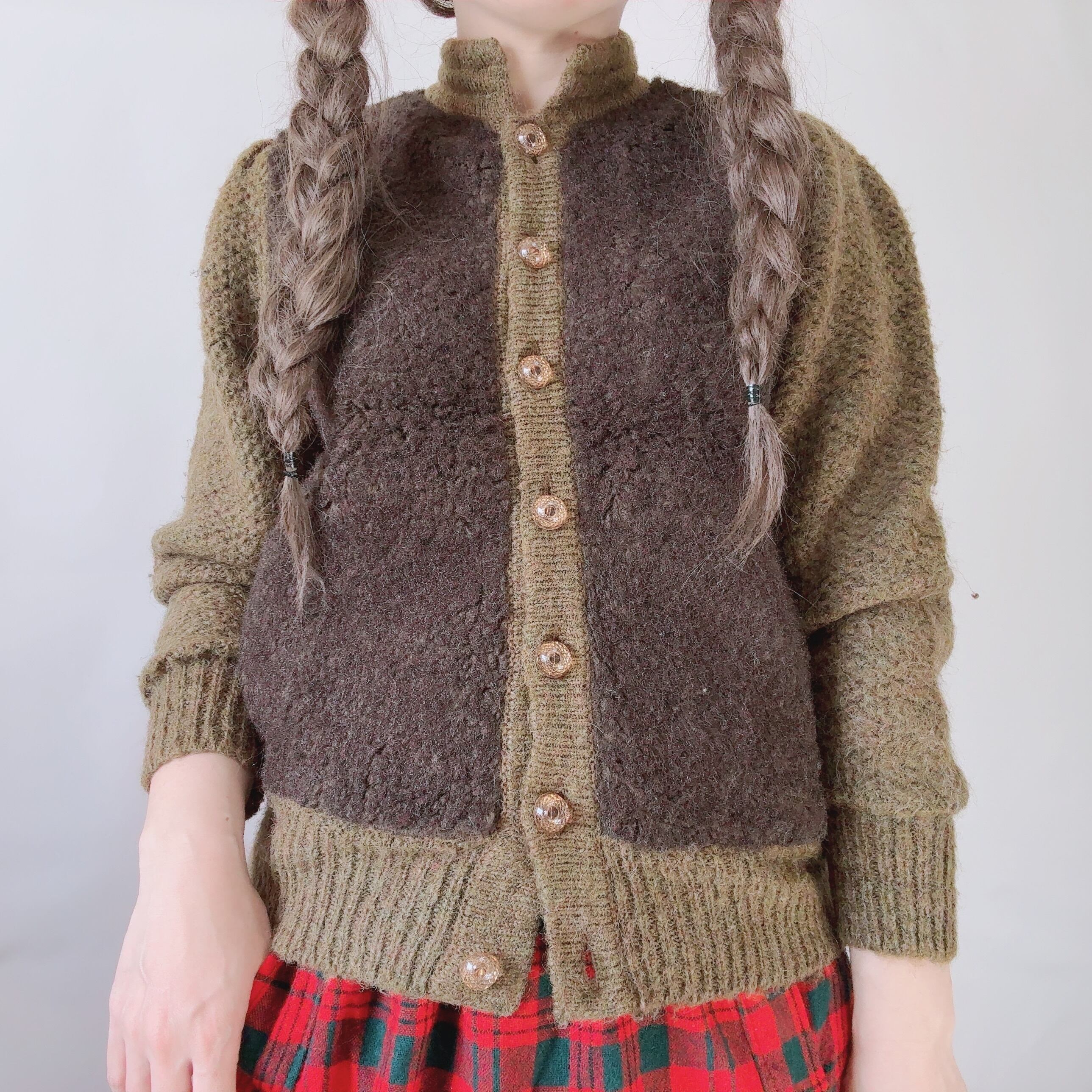“HSIN CHANG” knit cardigan / 古着 ニット ボア カーディガン