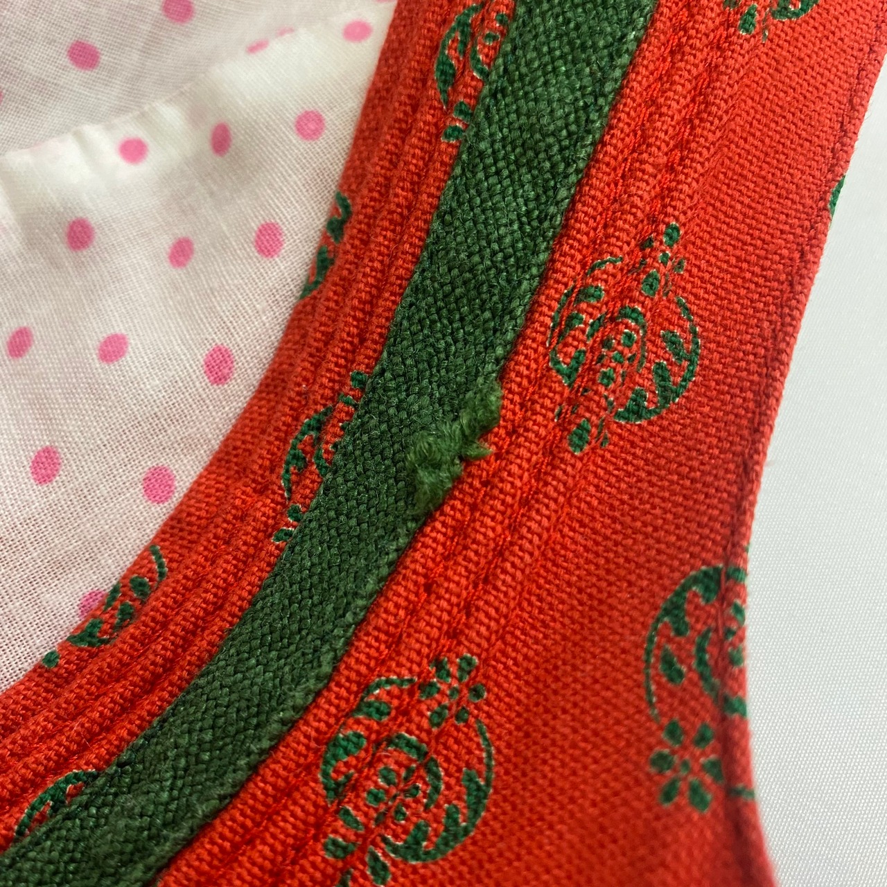 左肩紐のグリーン部分に少しほつれがあります。