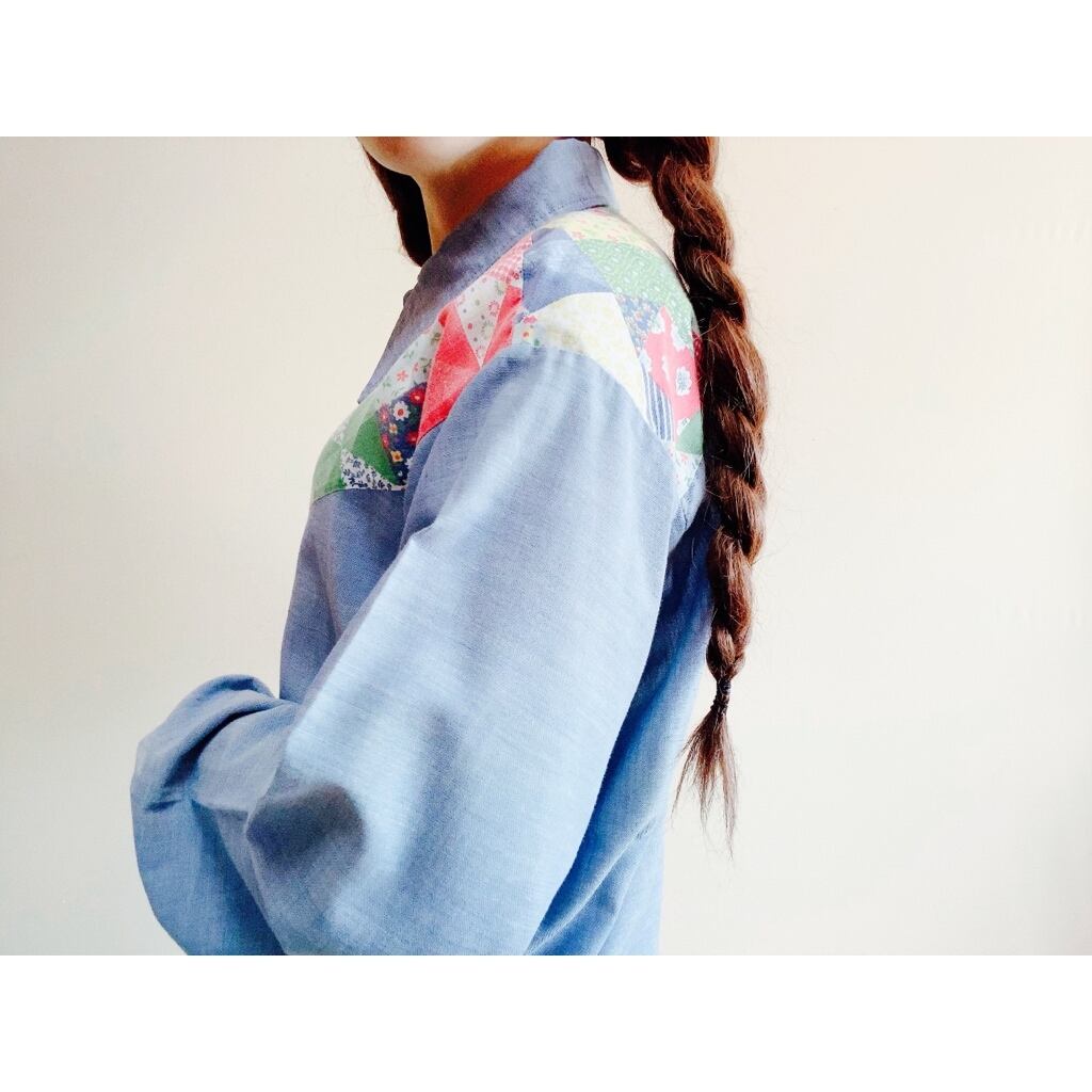 70's patchwork design chambray shirt /70年代 古着 パッチワーク シャンブレーシャツ