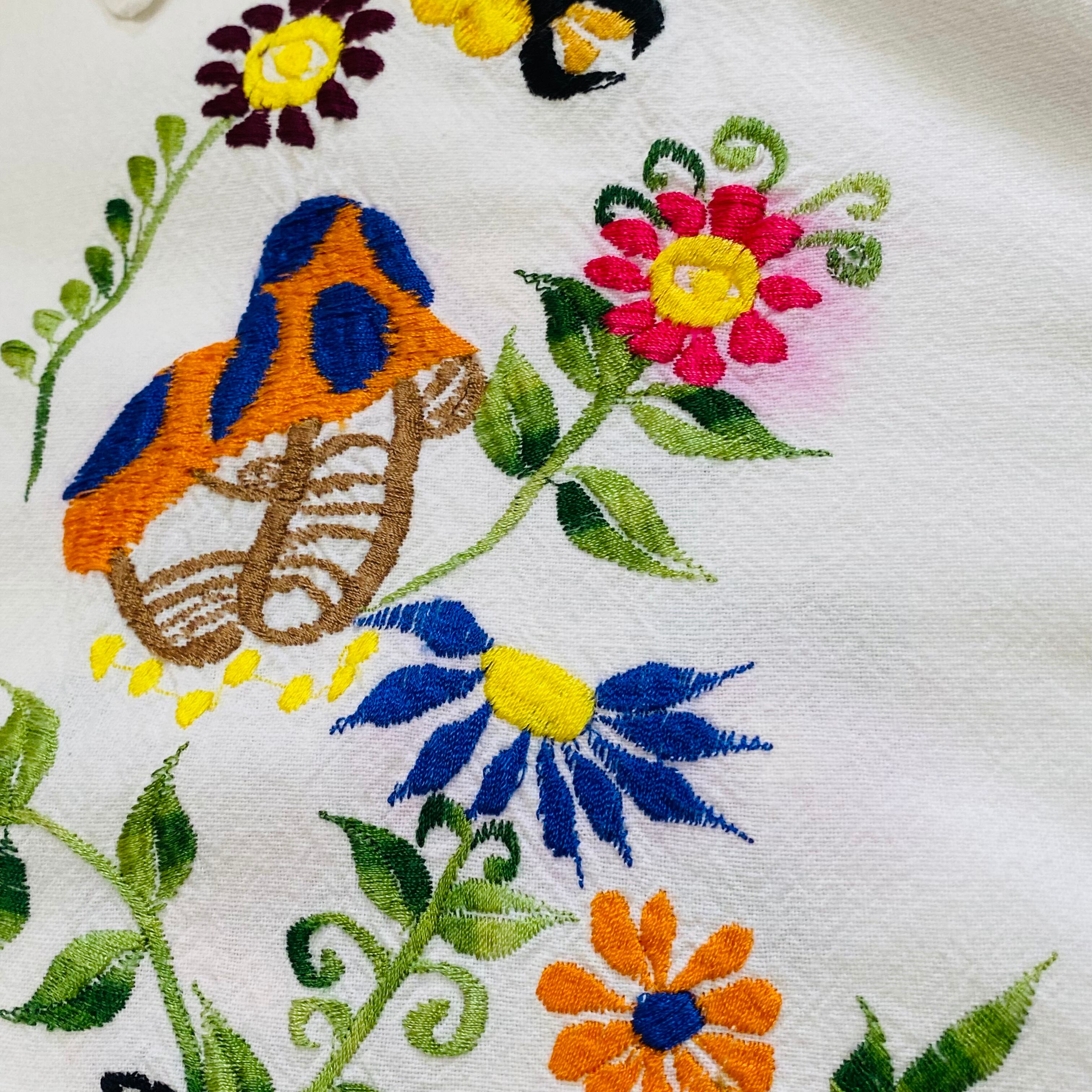 Mexico vintage embroidery shirt /古着 キノコの花 刺繍 シャツ