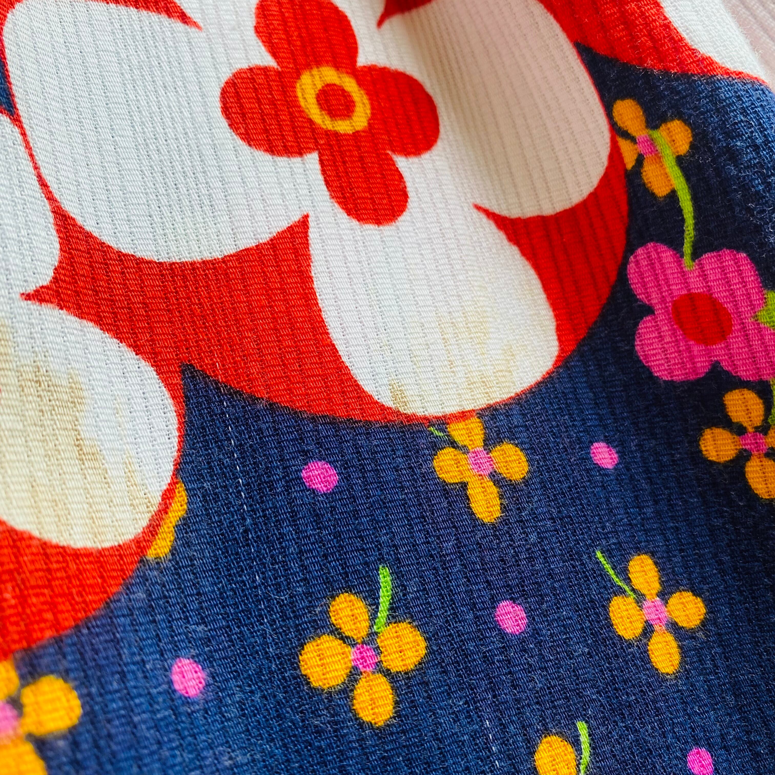 ネイビーベースにレトロな花々がキュートな