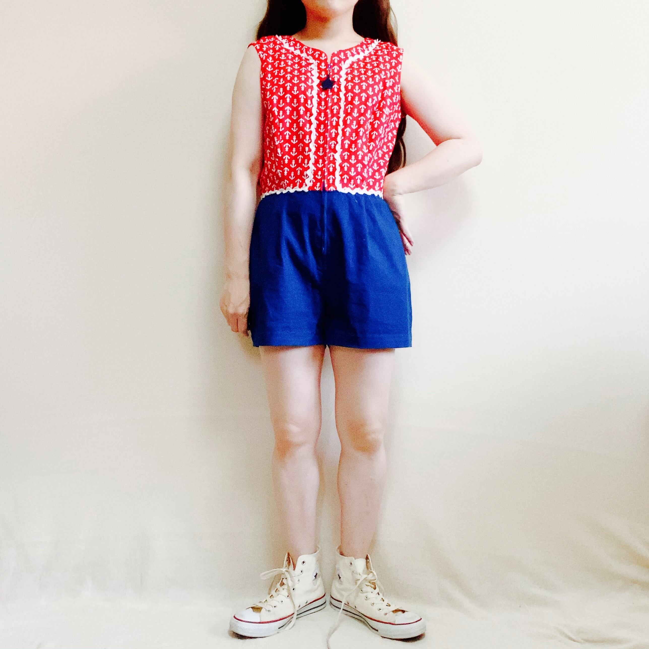 マリン柄が素敵なヴィンテージロンパースです❁ ❁