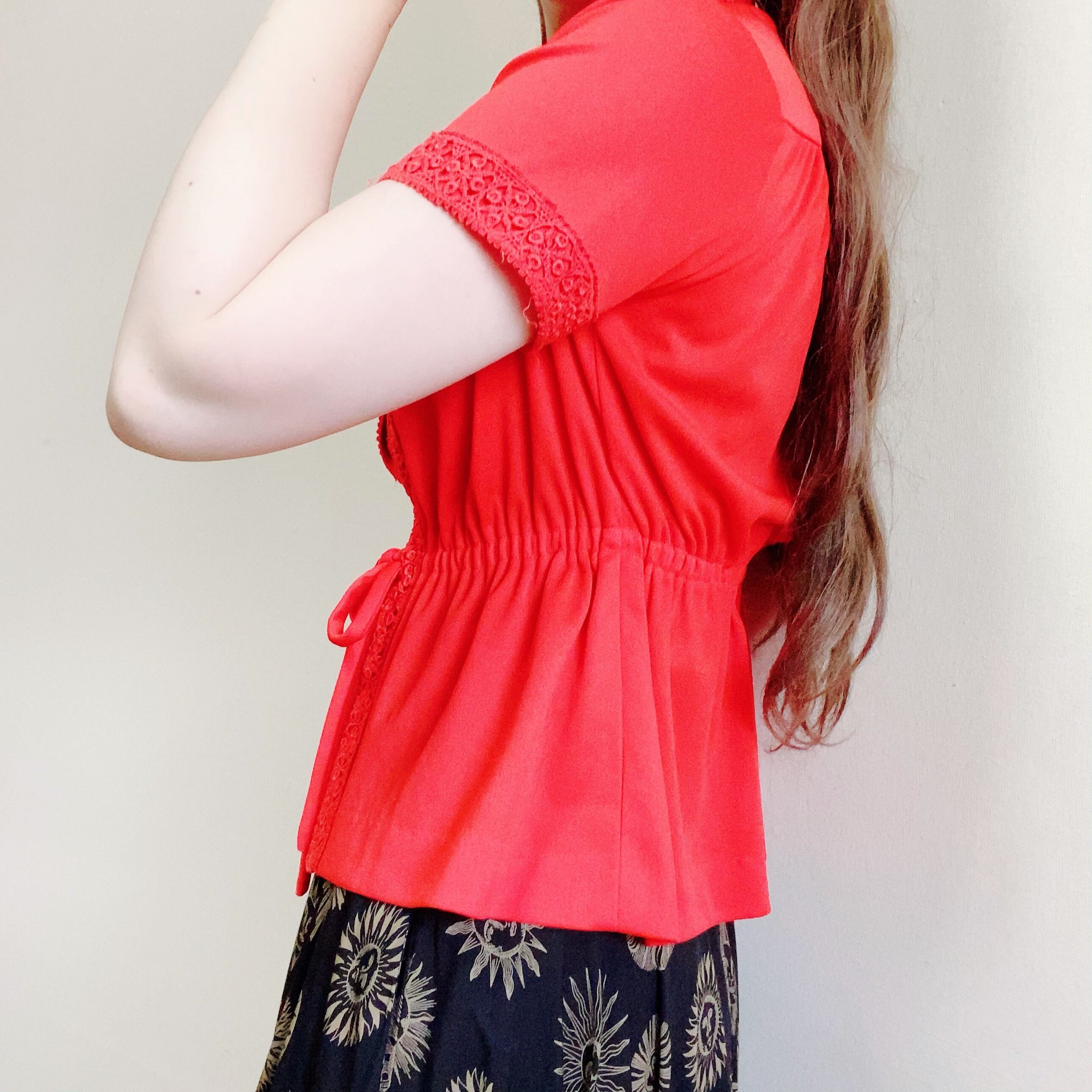 鮮やかなレッドのポリエステルブラウスです❁ ❁