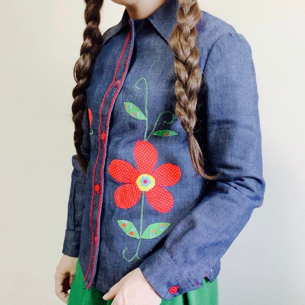 70's hippie denim shirt / 70年代 古着 お花と蝶 デニム シャツ