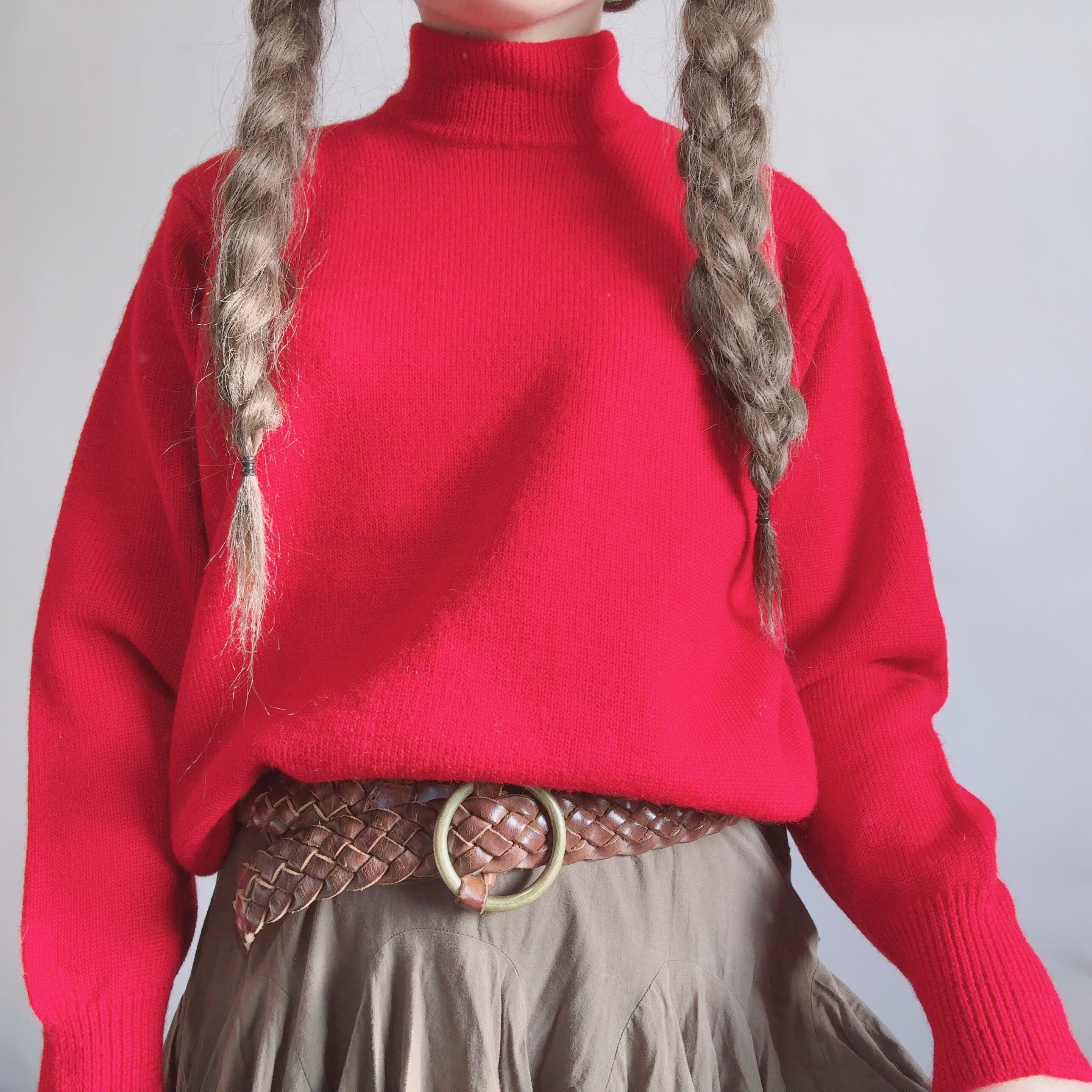 high neck Knit /古着 ハイネック ニット 赤