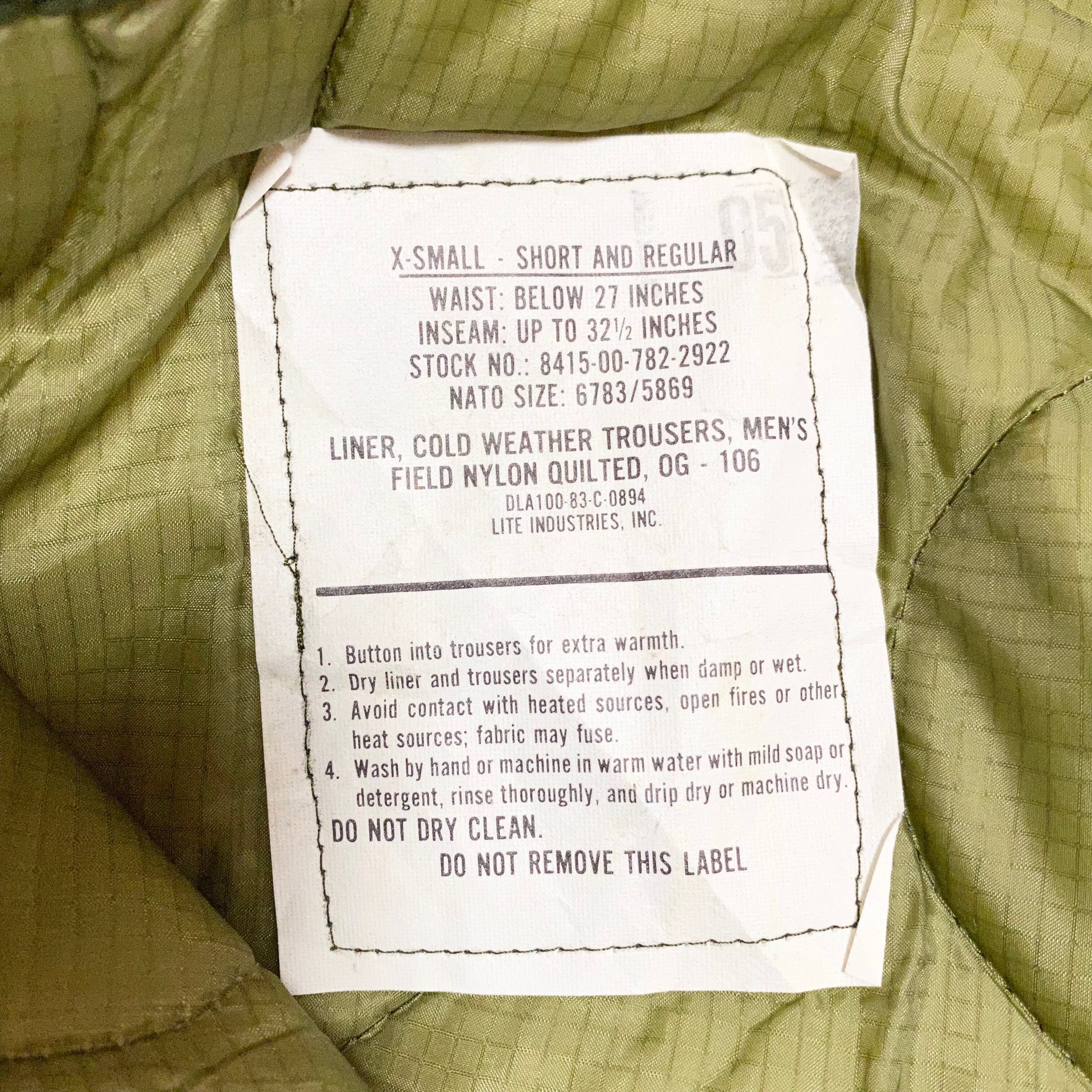 80's vintage U.S.ARMY military quilting liner pants /古着 ミリタリー キルティング ライナーパンツ