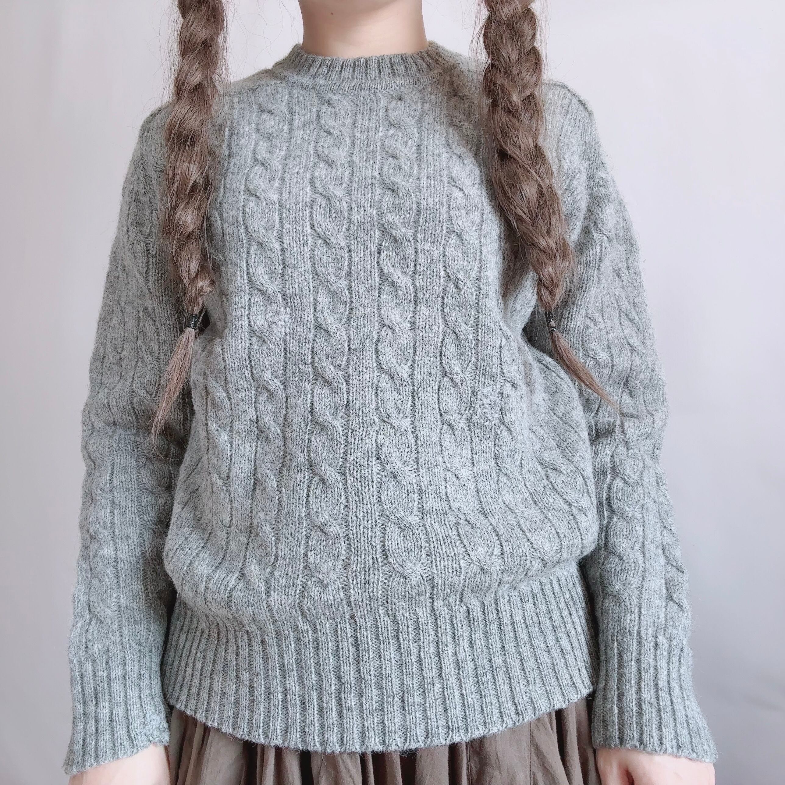 シンプルなグレーのケーブル編みニットです。