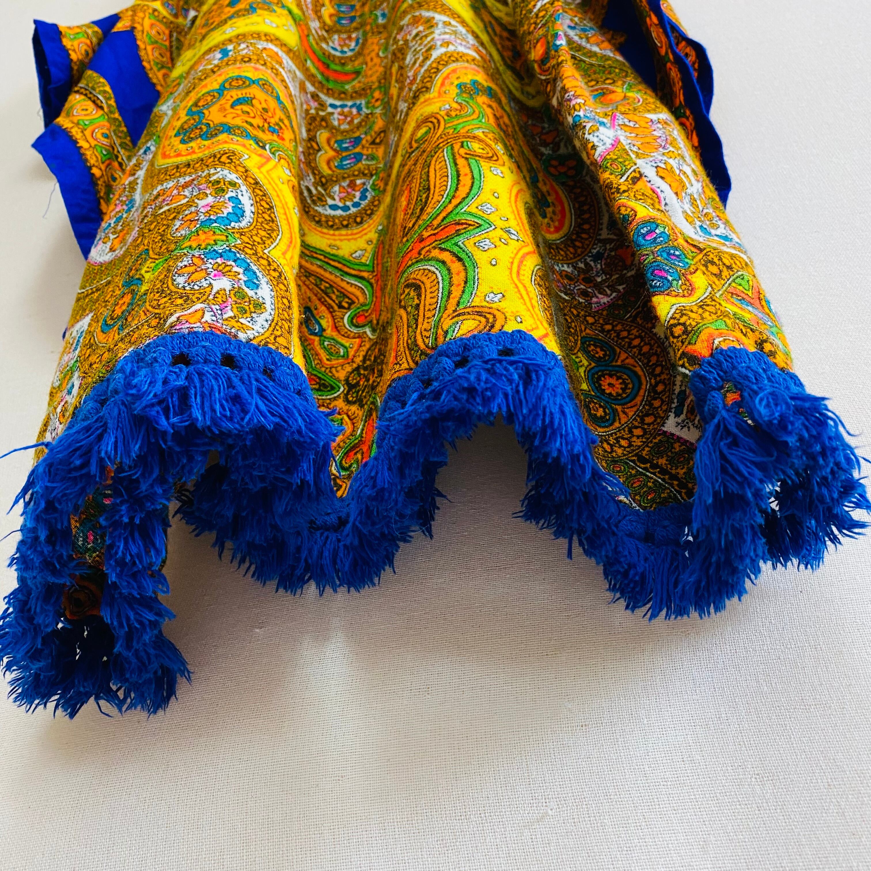 袖とフリンジ部分の鮮やかなブルーが