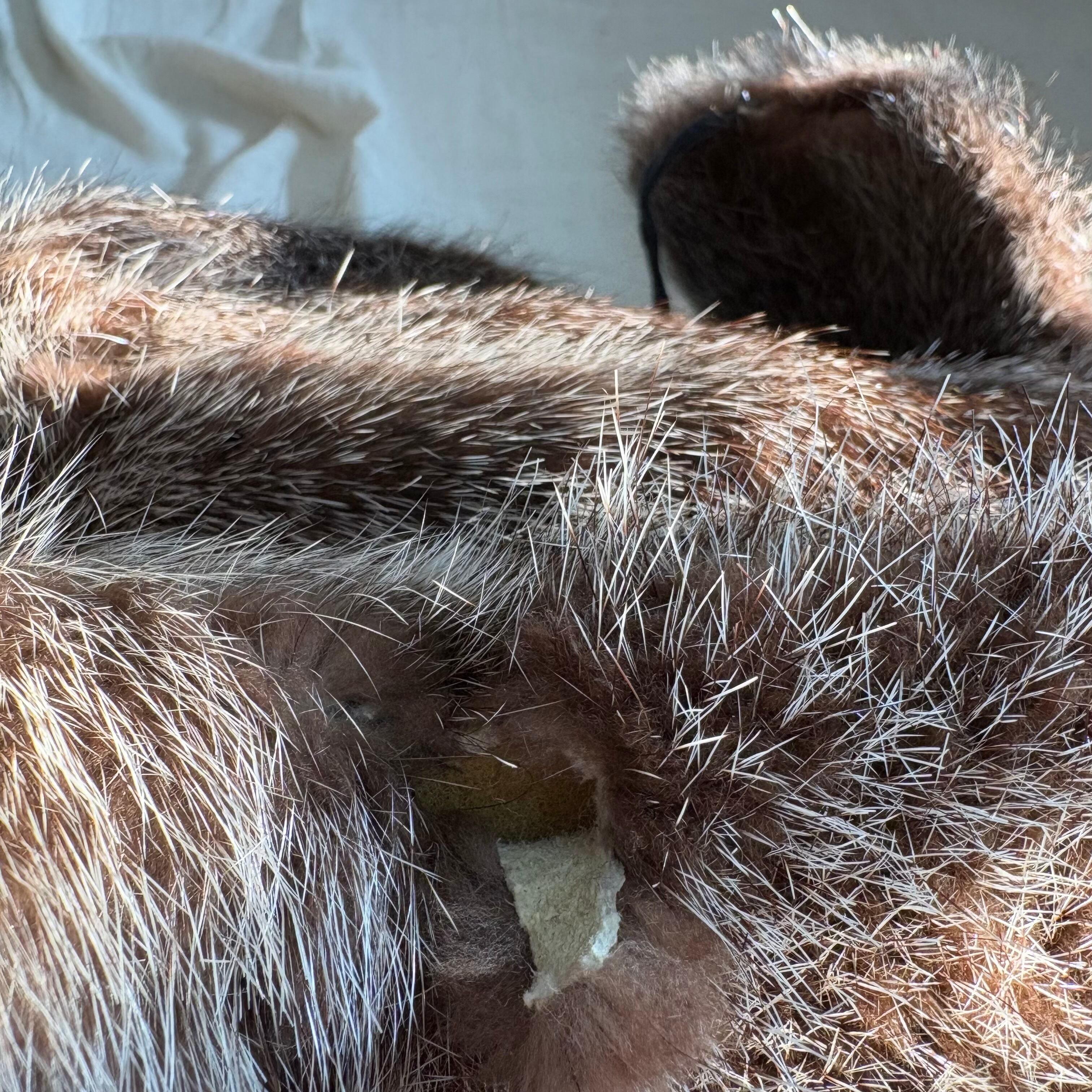 所々毛皮に破れがあります。