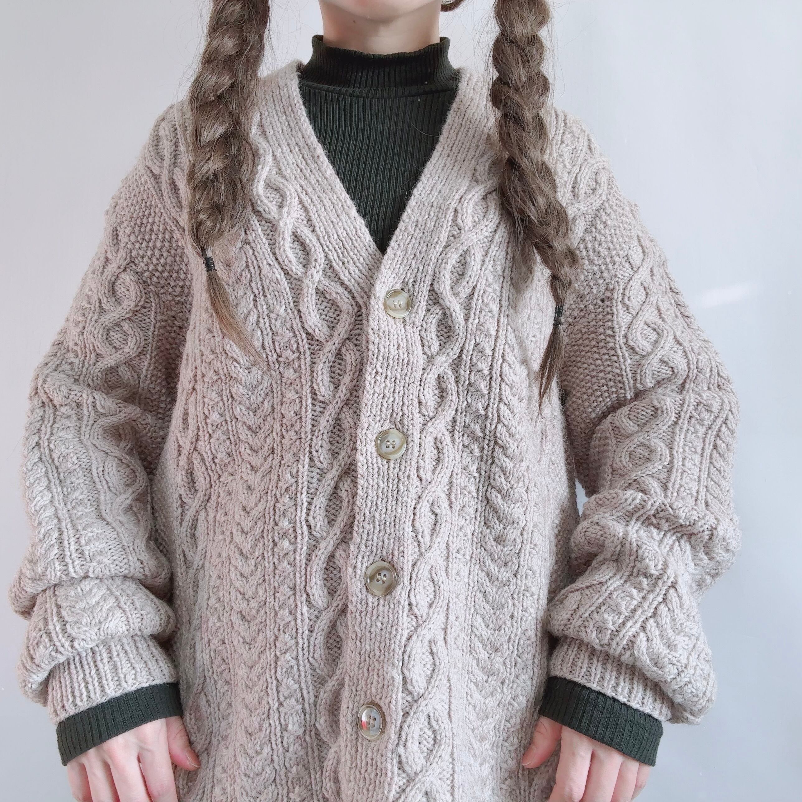 cable knit cardigan / 古着 ケーブル編み ニットカーディガン